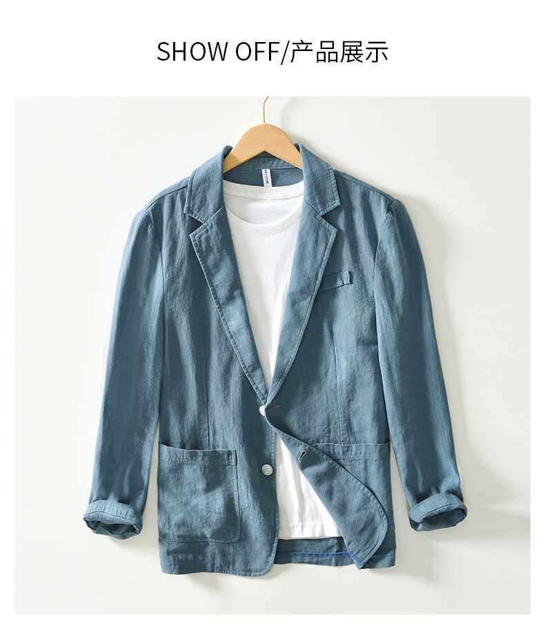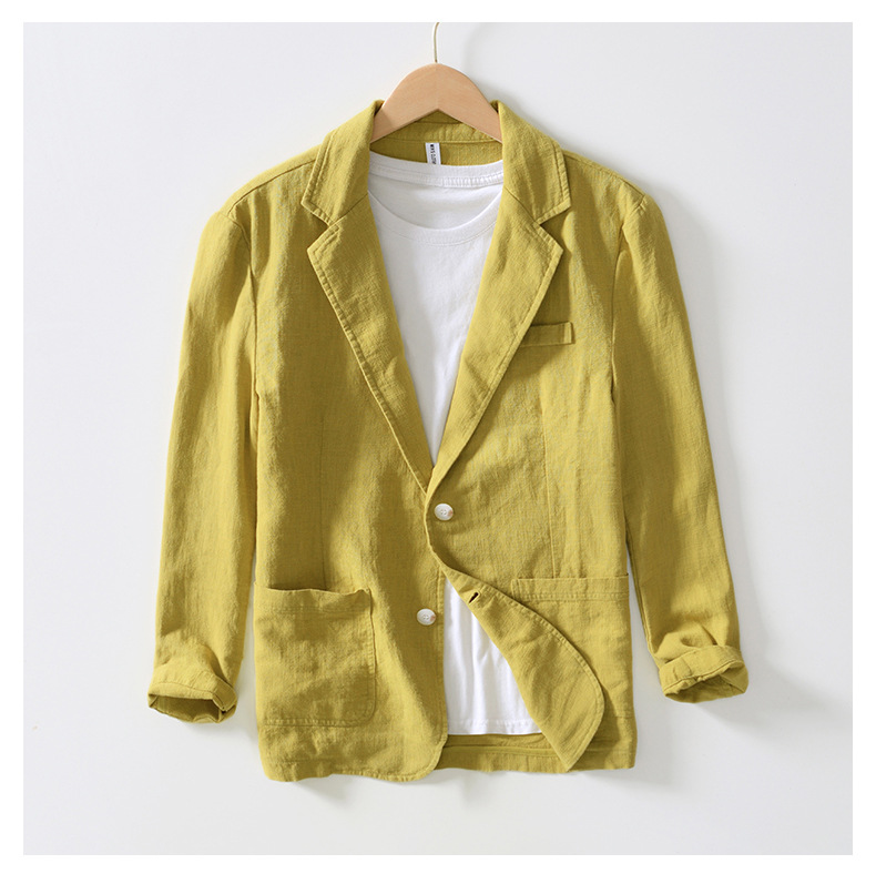 100 льняной костюм, мужской весенне-летний Тонкий льняной маленький костюм, деловое повседневное одиночное мужское повседневное пальто в западном стиле