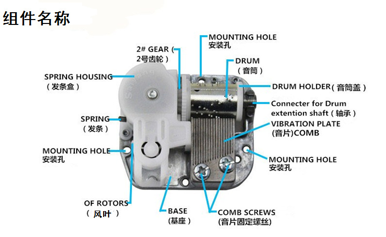 Музыкальная шкатулка saiyang движение музыкальной шкатулки 18NS35 с большим кронштейном мостика коронки зуба грибовидной головкой