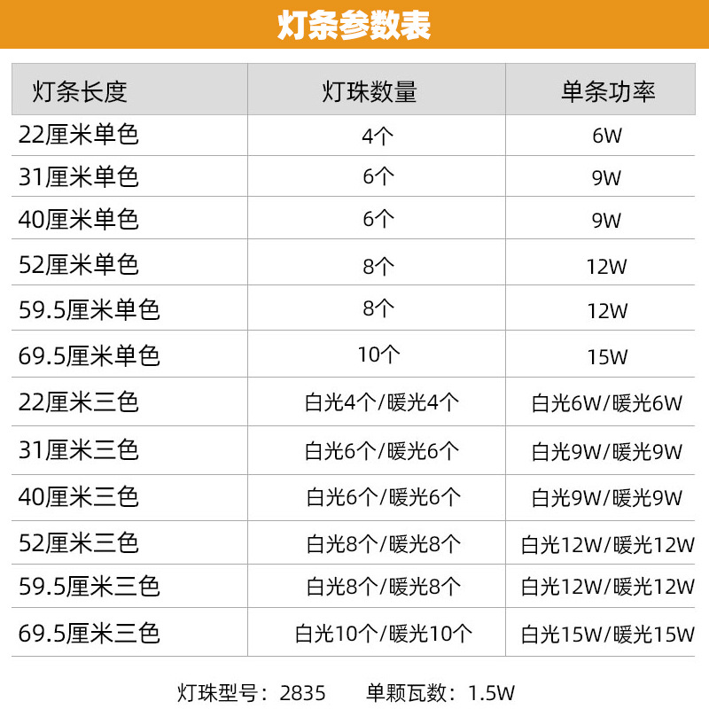 22 см 2 полоски 12 Вт; 22 см 3 полоски 18 Вт; 22 см 4 полосы 24 Вт; 22 см 5 полосок 30Вт; 22 см 6 полосок 36 Вт; 31 см 2 полоски 18 Вт; 31 см 3 полосы 27 Вт; 31 см 4 ленты 36 Вт; 31 см 5 полосок 45Вт; 31 см 6 полосок 54 Вт; 40 см 2 полоски 18 Вт; 40 см 3 полоски 27 Вт; 40 см 4 ленты 36 Вт; 40 см 5 полосок 45Вт; 40 см 6 полосок 54Вт; 40 см 8 полос 72 Вт; 52 см 2 полосы 24 Вт; 52 см 3 полосы 36 Вт; 52 см 4 ленты 48 Вт; 52 см 5 полосок 60 Вт; 52 см 6 полос 72 Вт; 52 см 8 полос 96 Вт; 52 см 10 полосок 120 Вт; 52 см 12 полос 144 Вт; 59,5 см 2 полосы 24 Вт; 59,5 см 3 полосы 36 Вт; 59,5 см 4 полосы 48 Вт; 59,5 см 5 полосок 60 Вт; 59,5 см 6 полос 72 Вт; 59,5 см 8 полос 96 Вт; 59,5 см 10 полосок 120 Вт; 59,5 см 12 полос 144 Вт; 69,5 см 2 полоски 30 Вт; 69,5 см 3 полосы 45 Вт; 69,5 см 4 ленты 60 Вт; 69,5 см 5 полосок 75 Вт; 69,5 см 6 полос 90 Вт; 69,5 см 8 полос 120 Вт; 90 см 2 полоски 36 Вт; 90 см 3 полосы 54 Вт; 90 см 4 ленты 72 Вт; 90 см 5 полосок 90 Вт; 90 см 6 полос 108 Вт; 90 см 8 полос 144 Вт; 115 см 2 полосы 48 Вт; 115 см 3 полосы 72 Вт; 115 см 4 ленты 96 Вт; 115 см 6 полос 144 Вт