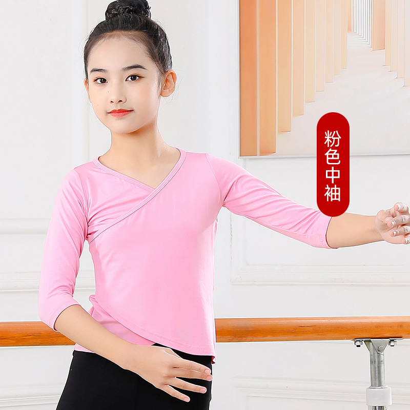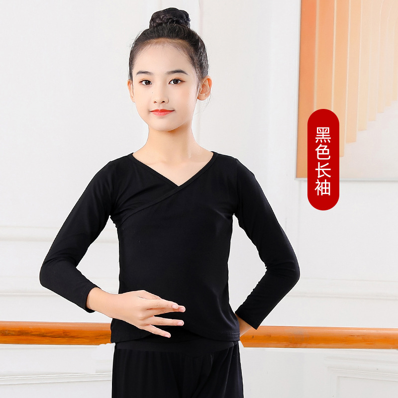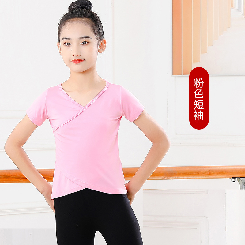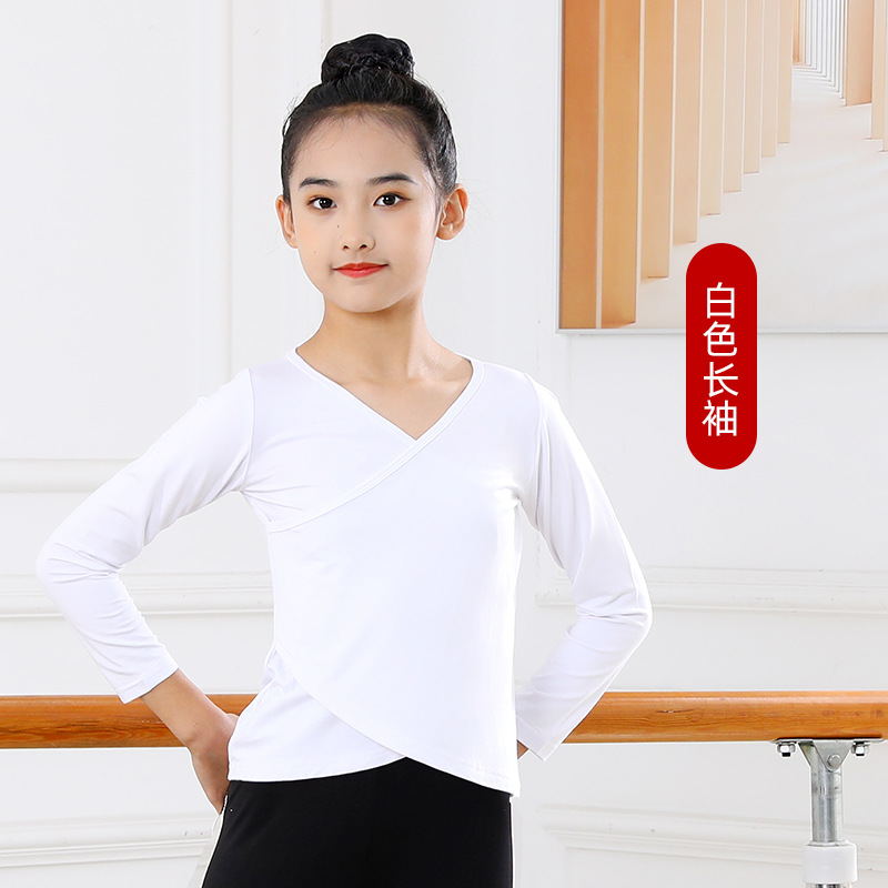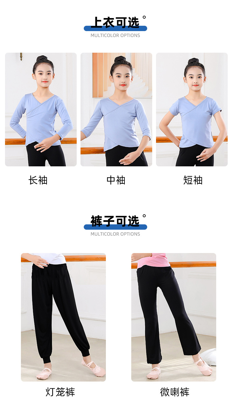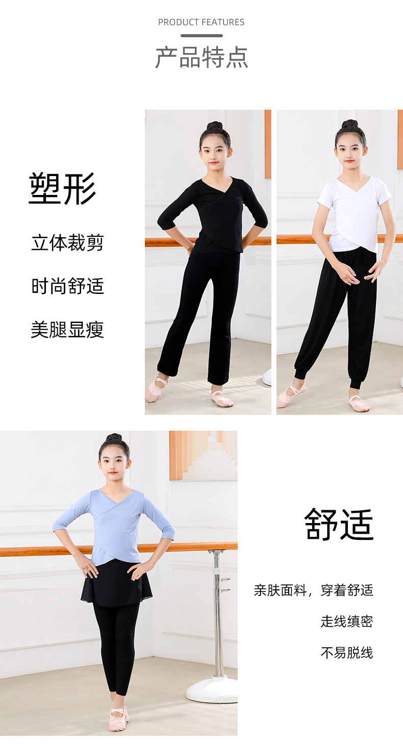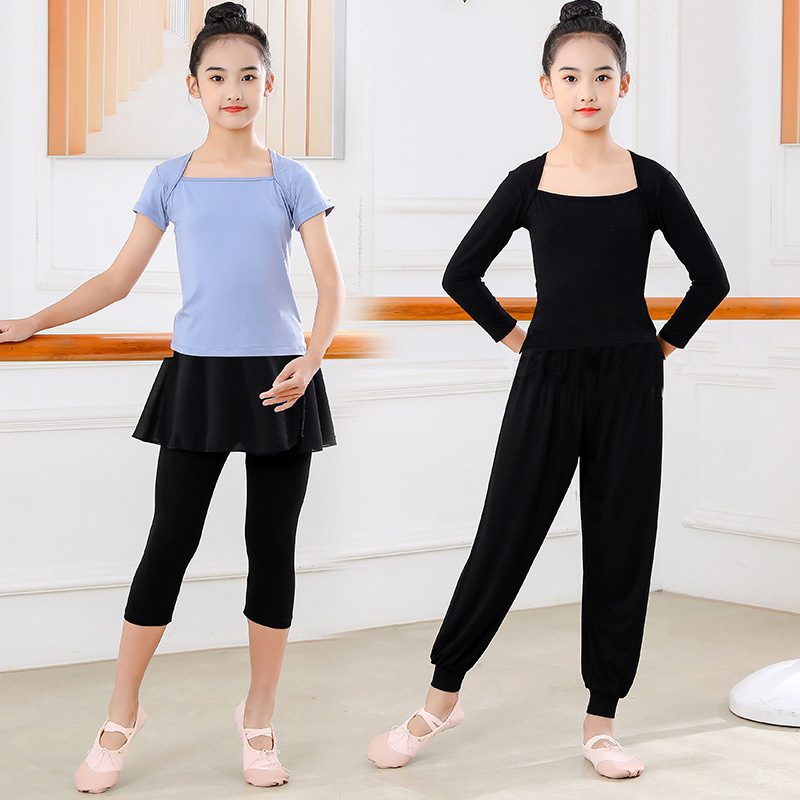 Детские весенние укороченные брюки с перекрестным воротником, костюм для танцев, тренировочная одежда для девочек с длинными и короткими рукавами, детские шаровары, Топ