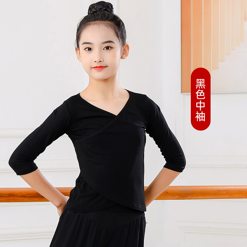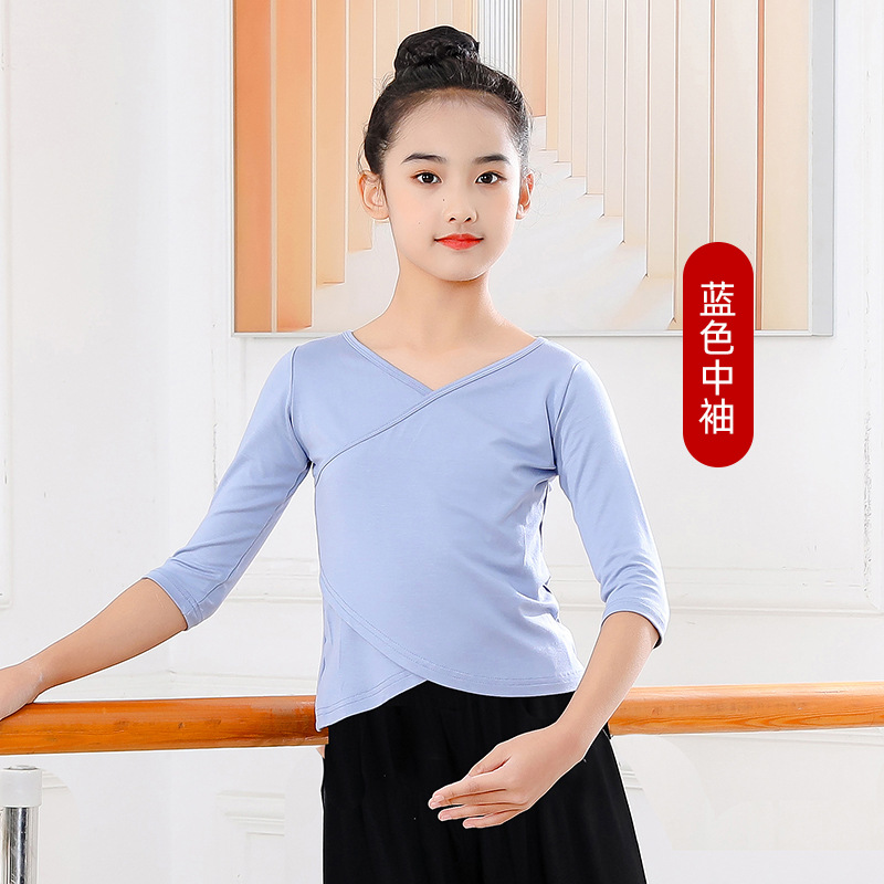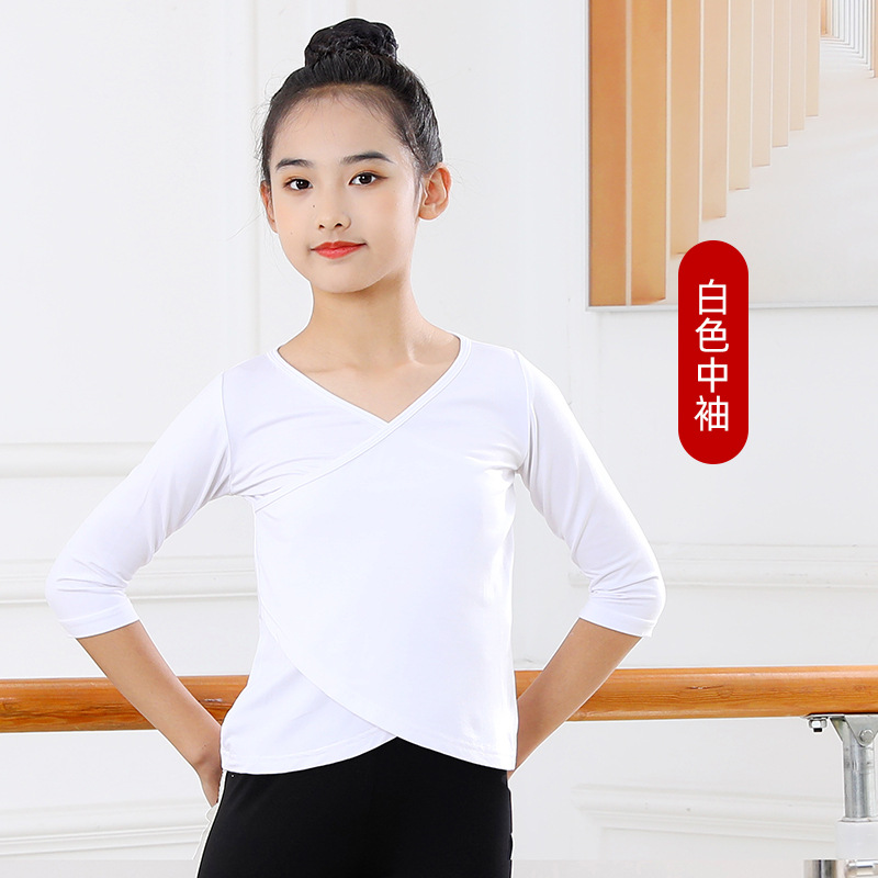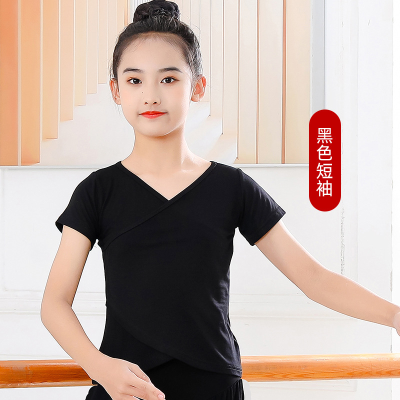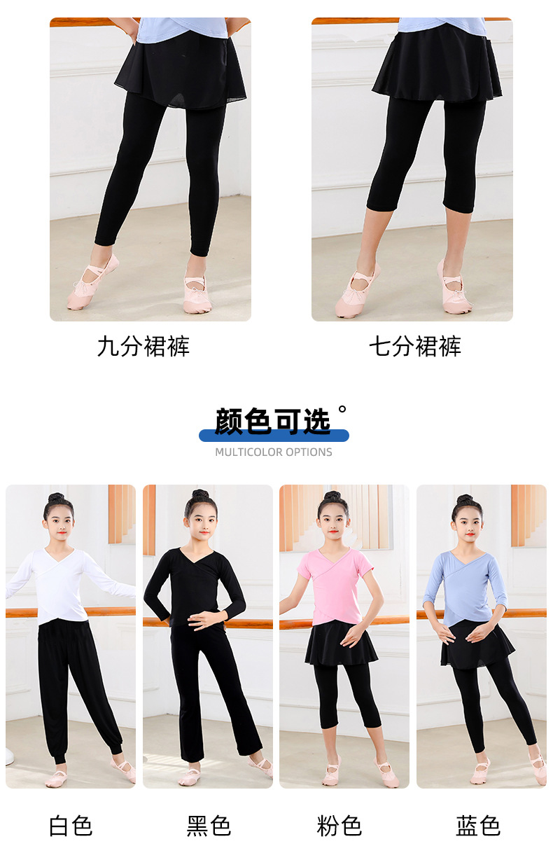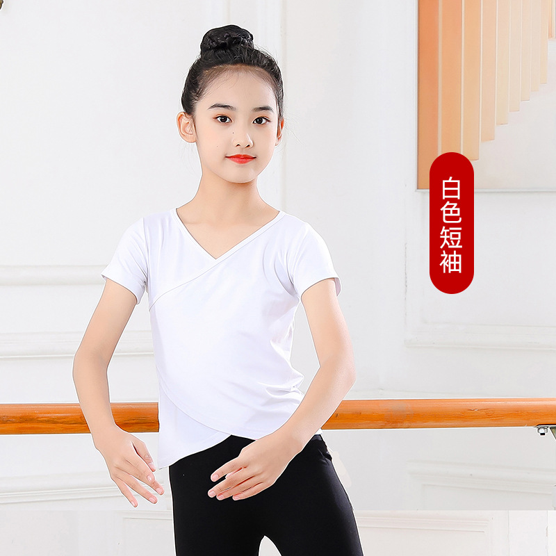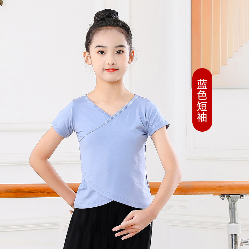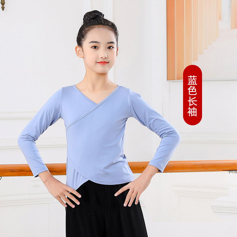 Детские весенние укороченные брюки с перекрестным воротником, костюм для танцев, тренировочная одежда для девочек с длинными и короткими рукавами, детские шаровары, Топ