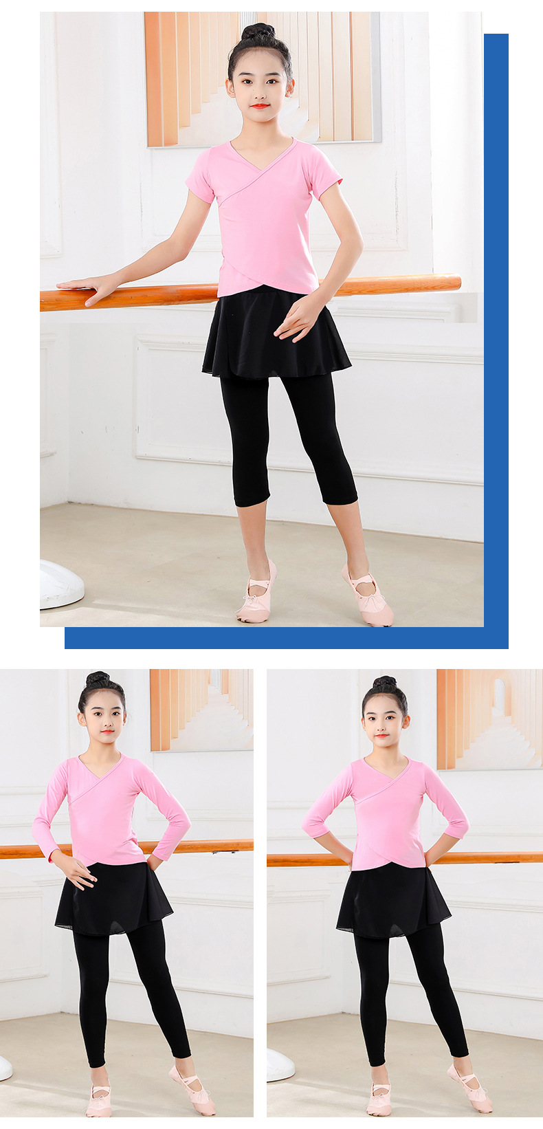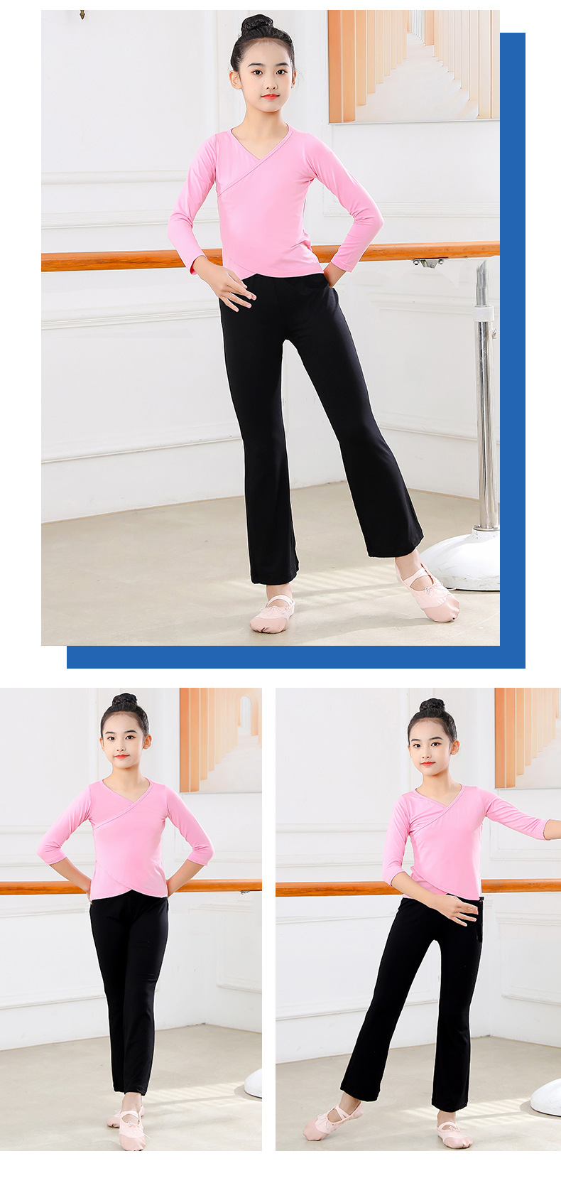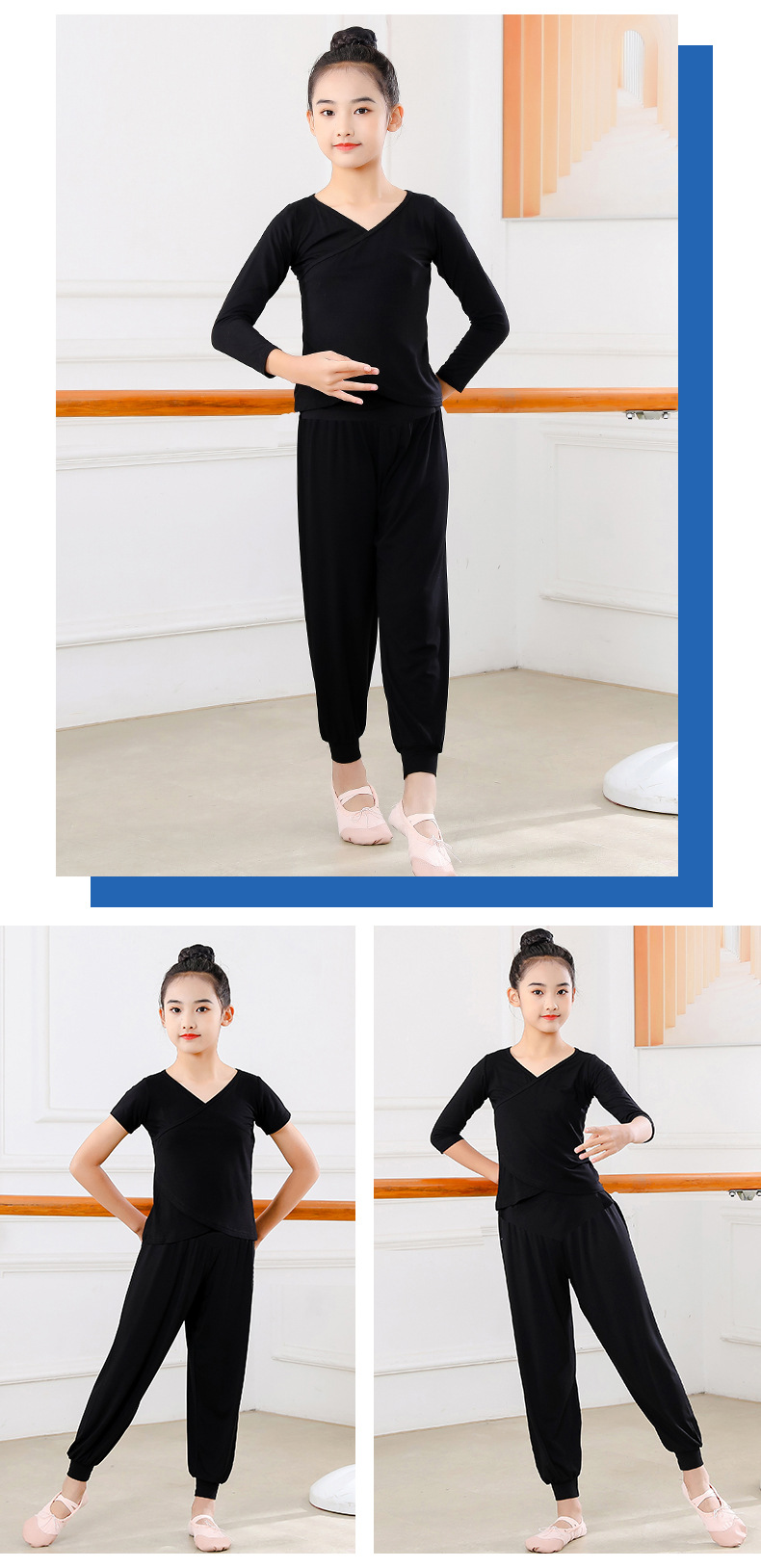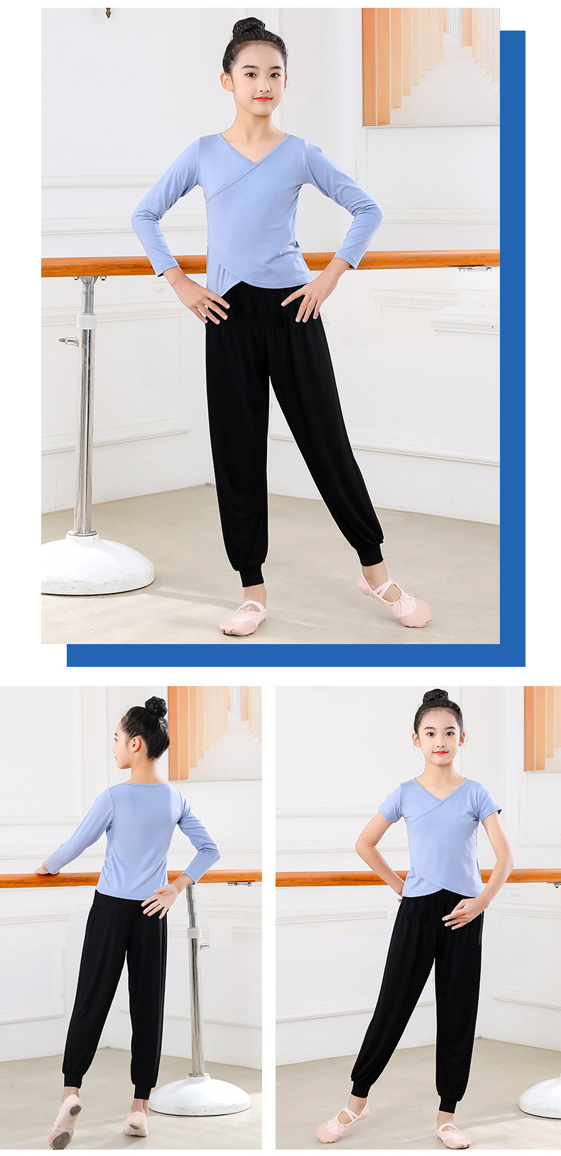 Детские весенние укороченные брюки с перекрестным воротником, костюм для танцев, тренировочная одежда для девочек с длинными и короткими рукавами, детские шаровары, Топ