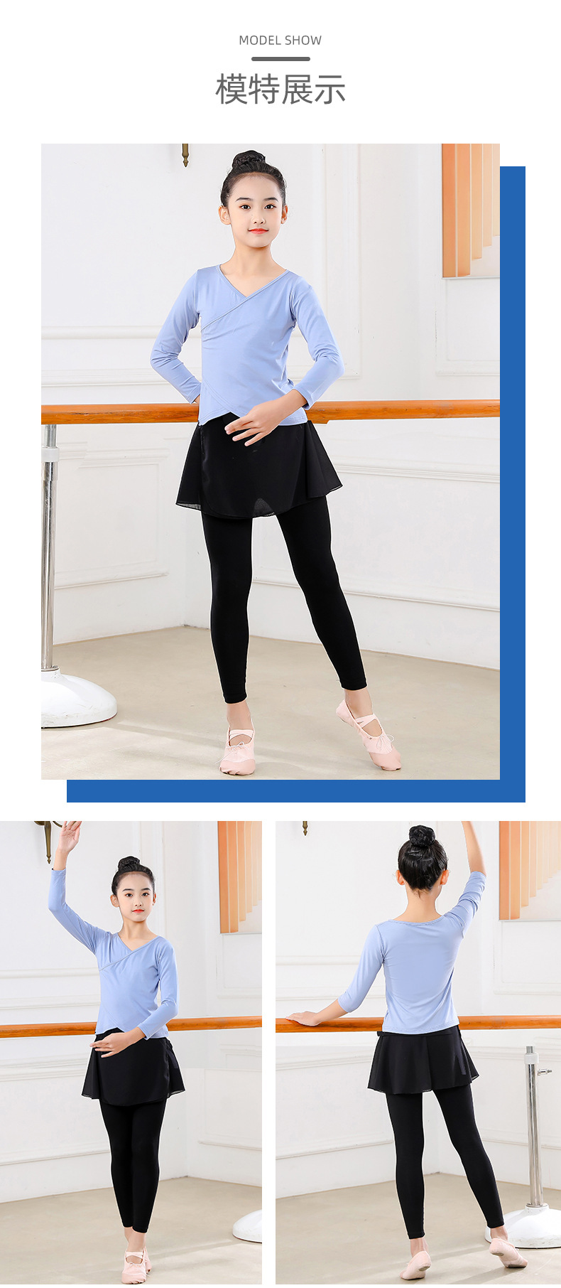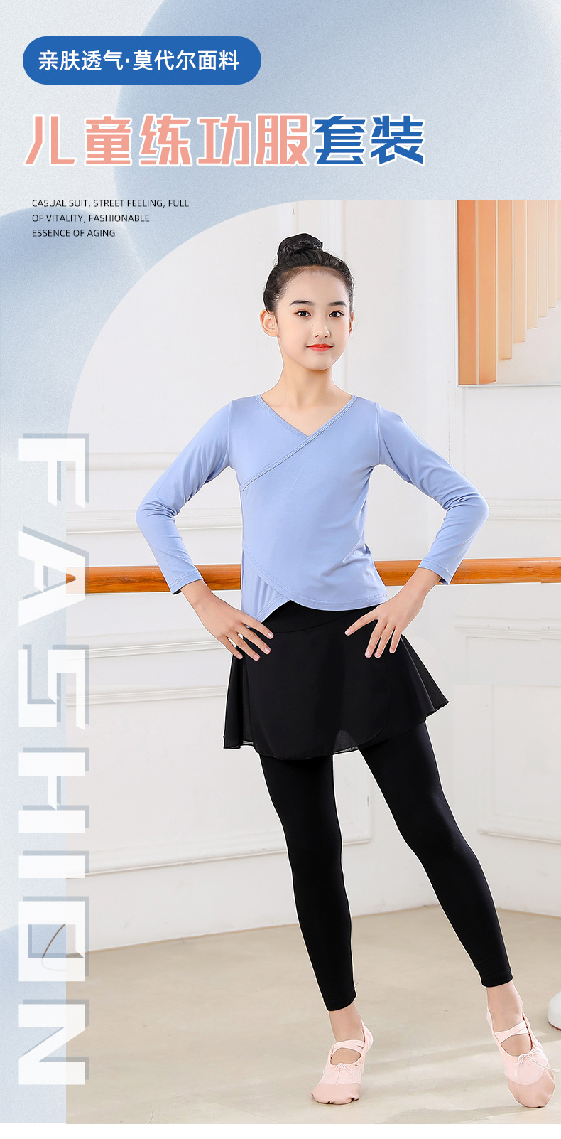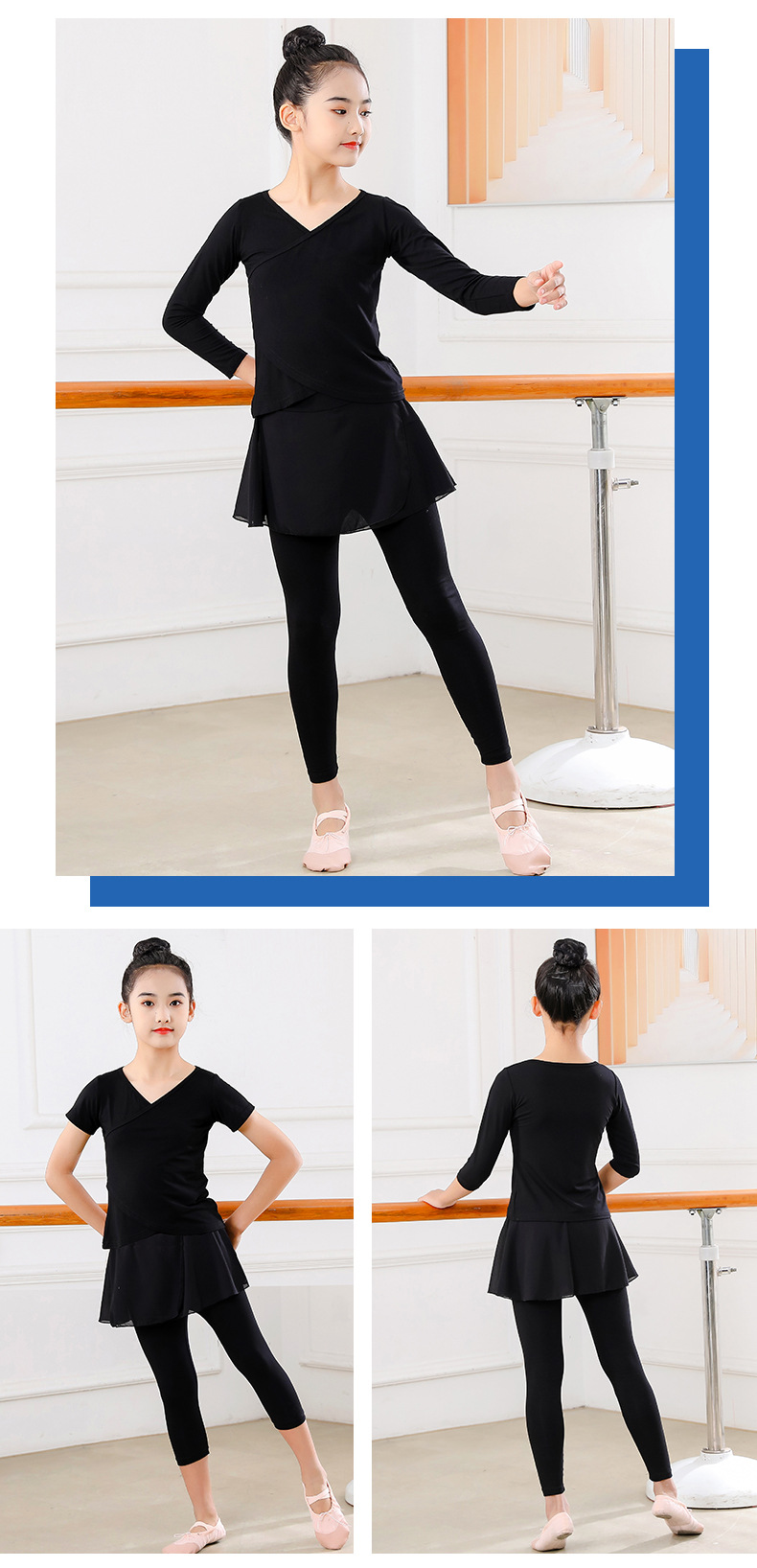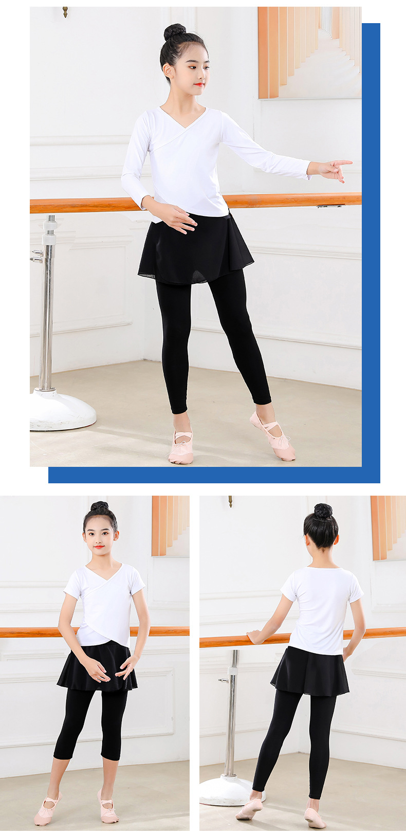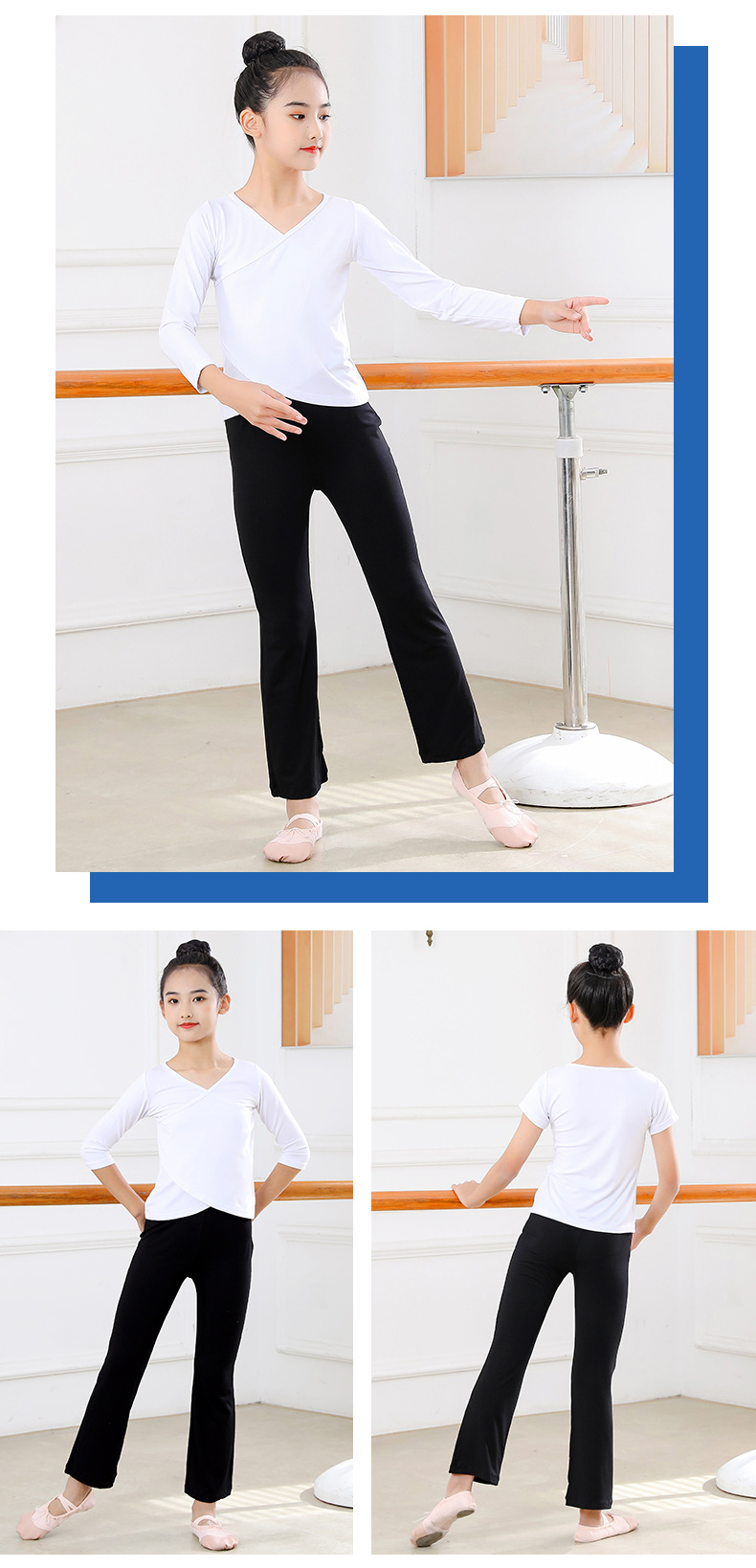 Детские весенние укороченные брюки с перекрестным воротником, костюм для танцев, тренировочная одежда для девочек с длинными и короткими рукавами, детские шаровары, Топ