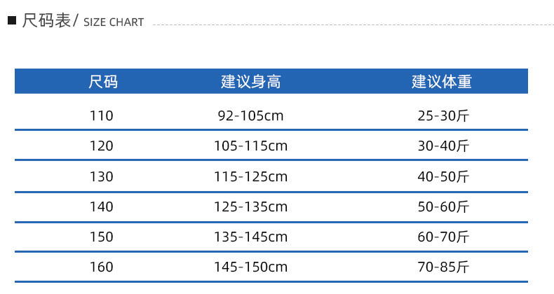 110 см; 120 см; 130 см; 140 см; 150 см; 160 см