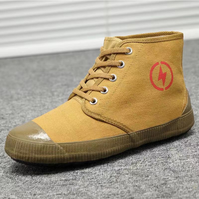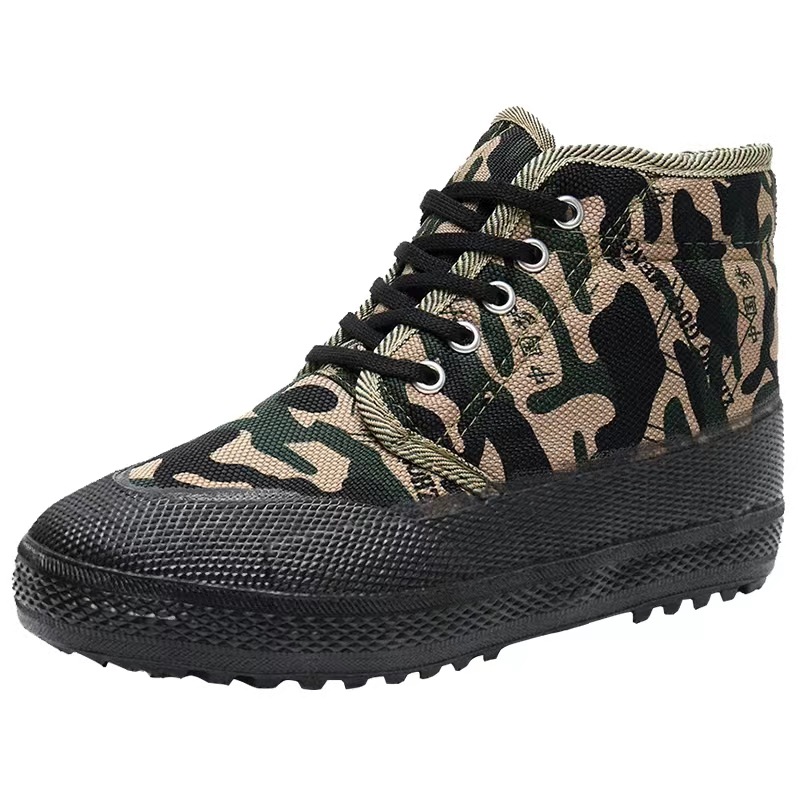 Высокие обувные туфли оптом, камуфляжные высокие туфли для защиты труда, строительная площадка, желтые резиновые туфли, дышащие парусиновые, нескользящие, износостойкие, военная подготовка