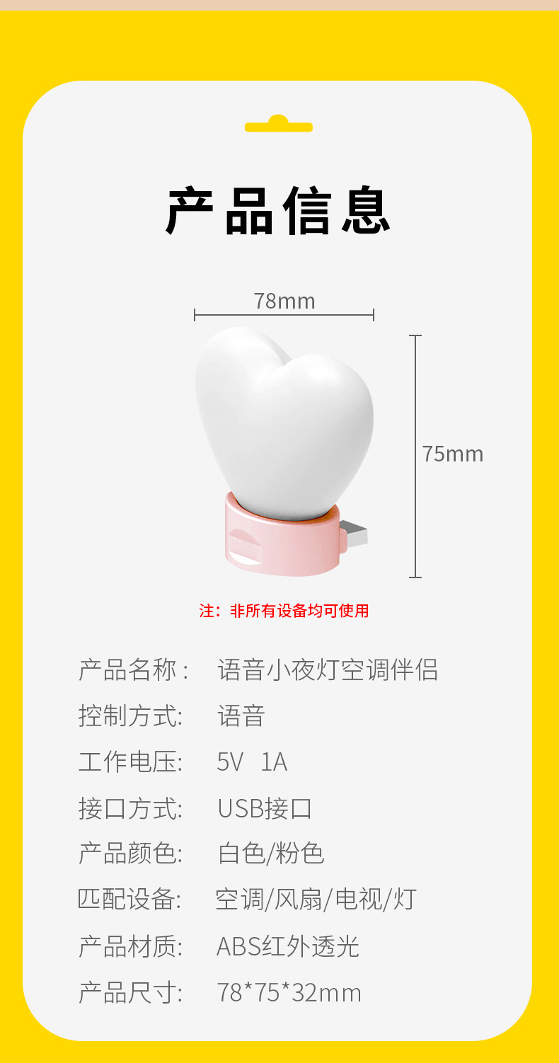 Умный ночник кондиционер компаньон USB маленький Любовь голос свет пульт дистанционного инфракрасный пульт дистанционного управления телевизор Вентилятор Универсальный