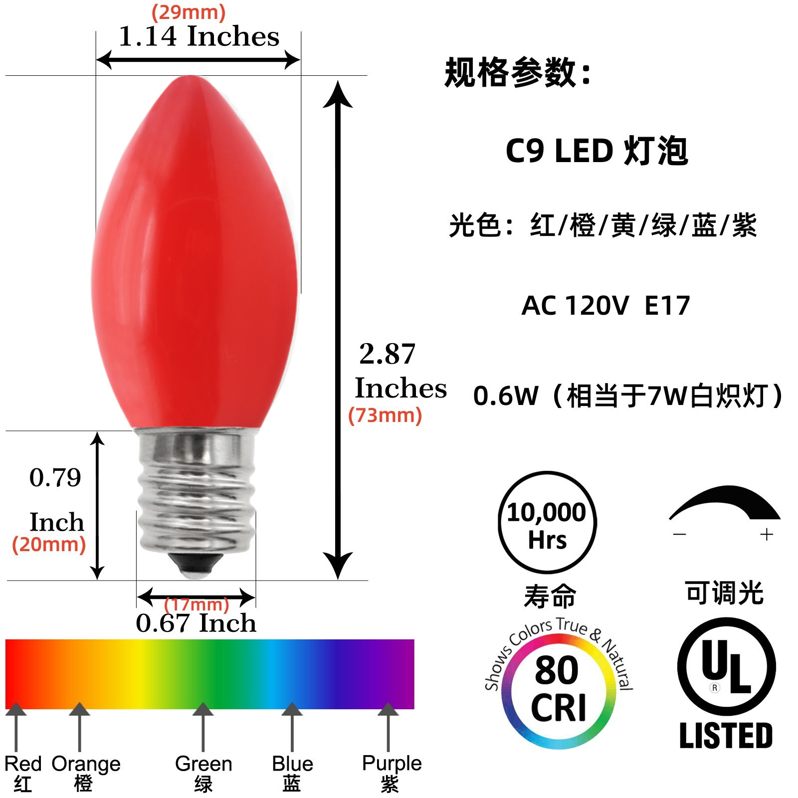 Трансграничная поставка E17 C9 Светодиодная лампа 0,6 Вт для улицы, водонепроницаемая, для украшения двора, непрозрачный пластик, красочный