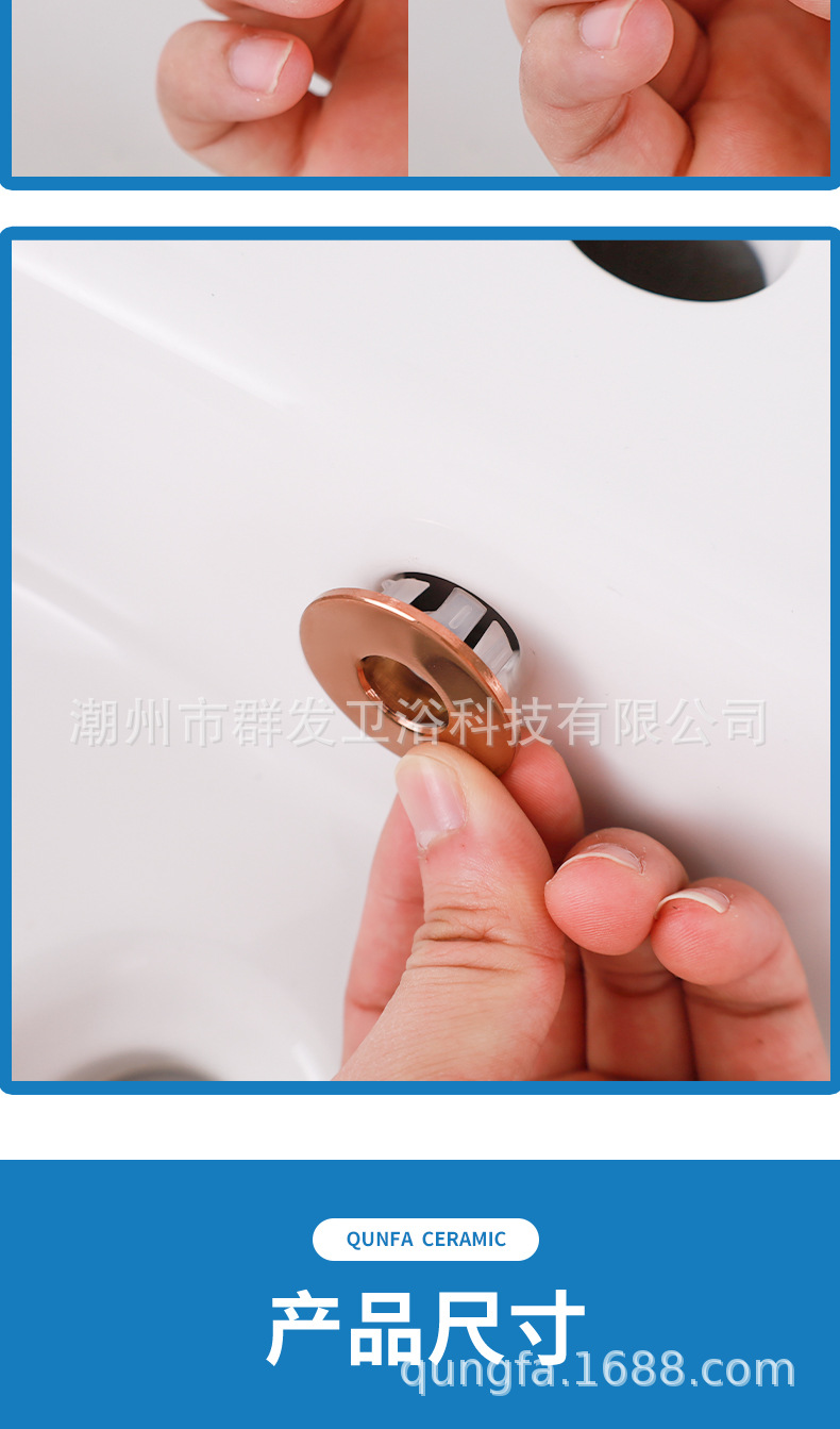 Источник производителя чистой меди с покрытием переливания воды Кольцо керамическое отверстие для перелива воды Круглое декоративное кольцо умывальник