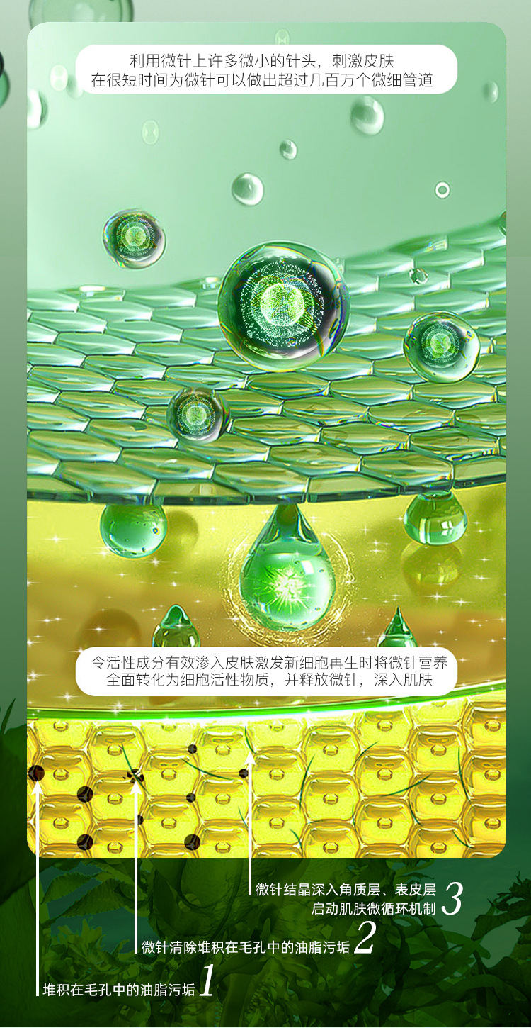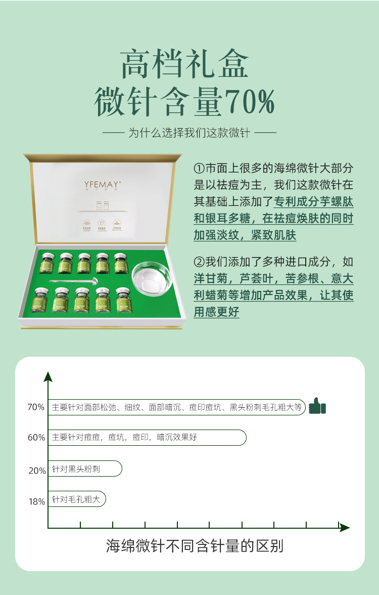 [70% длинная игла] Губка микроигла маленькая зеленая пленка Очищающая поры Толстая черная голова укрепляющая костная игла микрокристаллический чехол для омоложения кожи