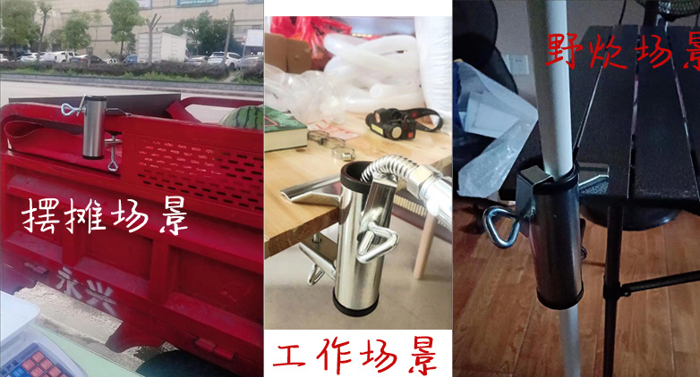 白色升级款的伞夹适合夹在平面的桌面,墙面,也适合圆形的铁杆,围栏,自行车车把等,都能夹的稳,用途很多