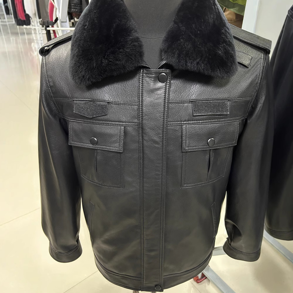 Дежурная кожаная одежда Охранник Кожаный холодный костюм Патрульный зимний мужской и женский завод кожаной одежды Haining Мужская кожаная куртка