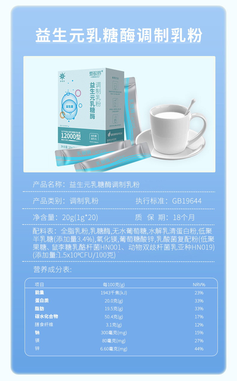 Лактаза, пробиотики, гидролизованный сывороточный белок, глюконат цинка, магний