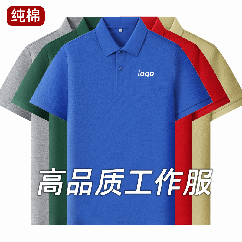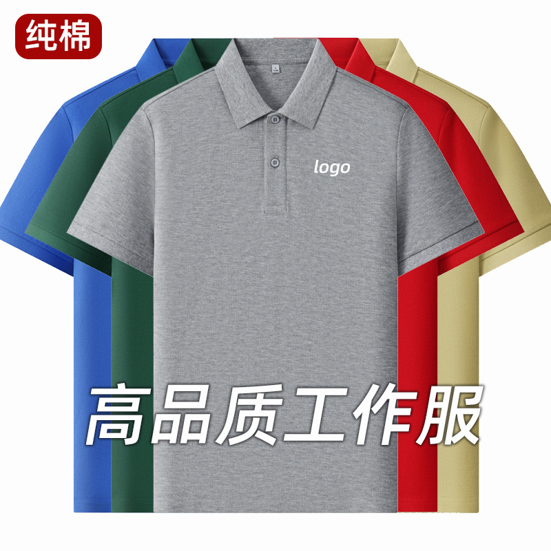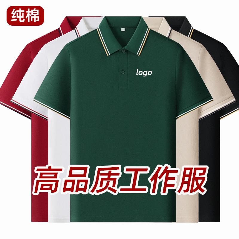 Рубашка-поло из чистого длинноволокнистого хлопка с шелковистым блеском, короткий рукав, вышитый логотип, отложной воротник, униформа для команды, летняя рабочая одежда