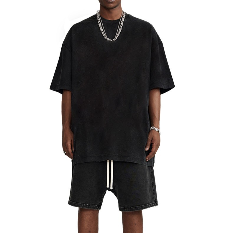 Трансграничная потертая футболка, модная брендовая свободная футболка из чистого хлопка с батиками в стиле ретро, жареная снежинка, свободная футболка большого размера