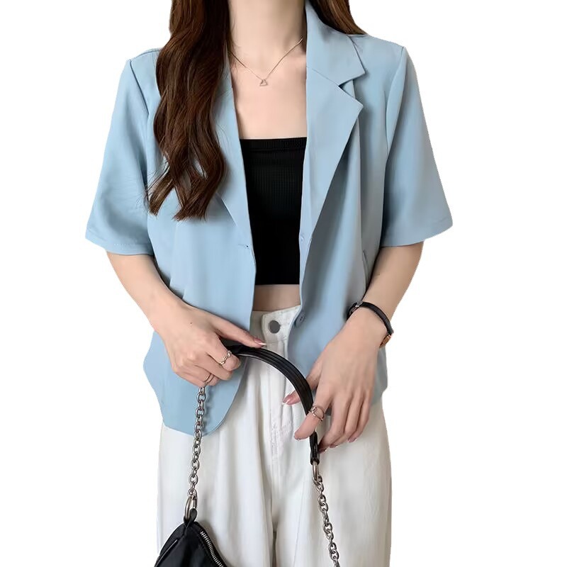 Костюм с воротником и коротким рукавом Пальто женское лето 2023 Новый дизайн Sense Niche Тонкая рубашка Короткий Топ