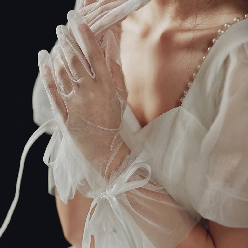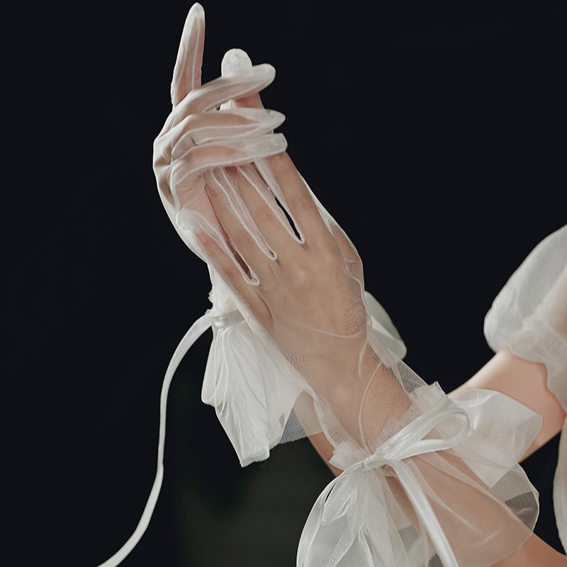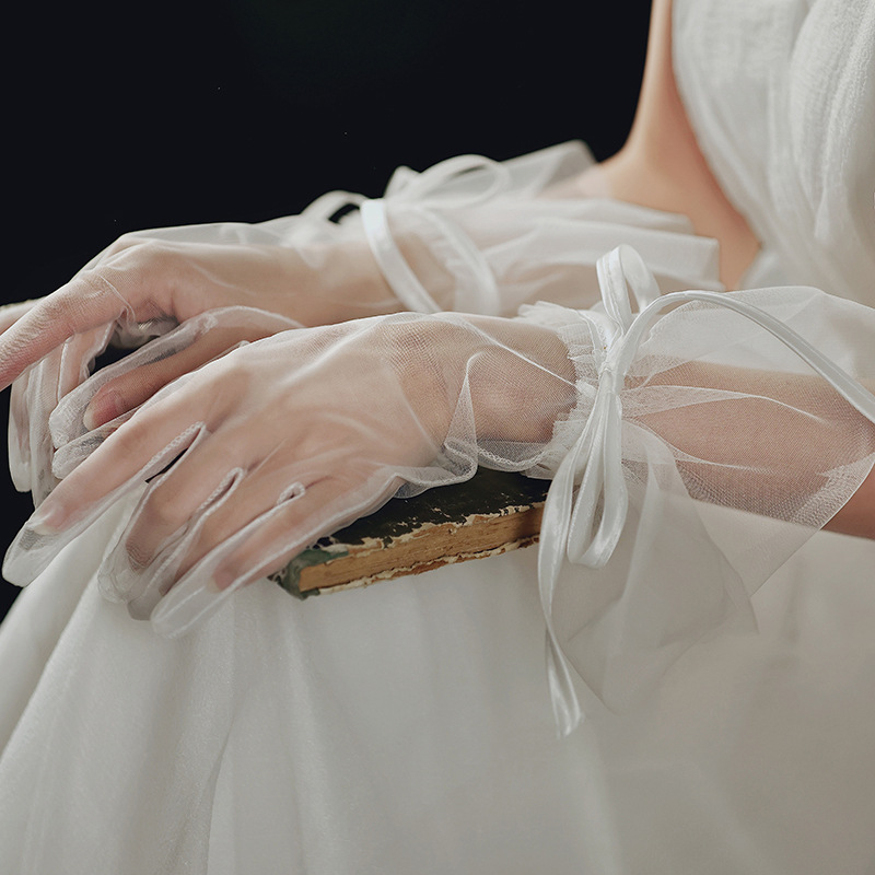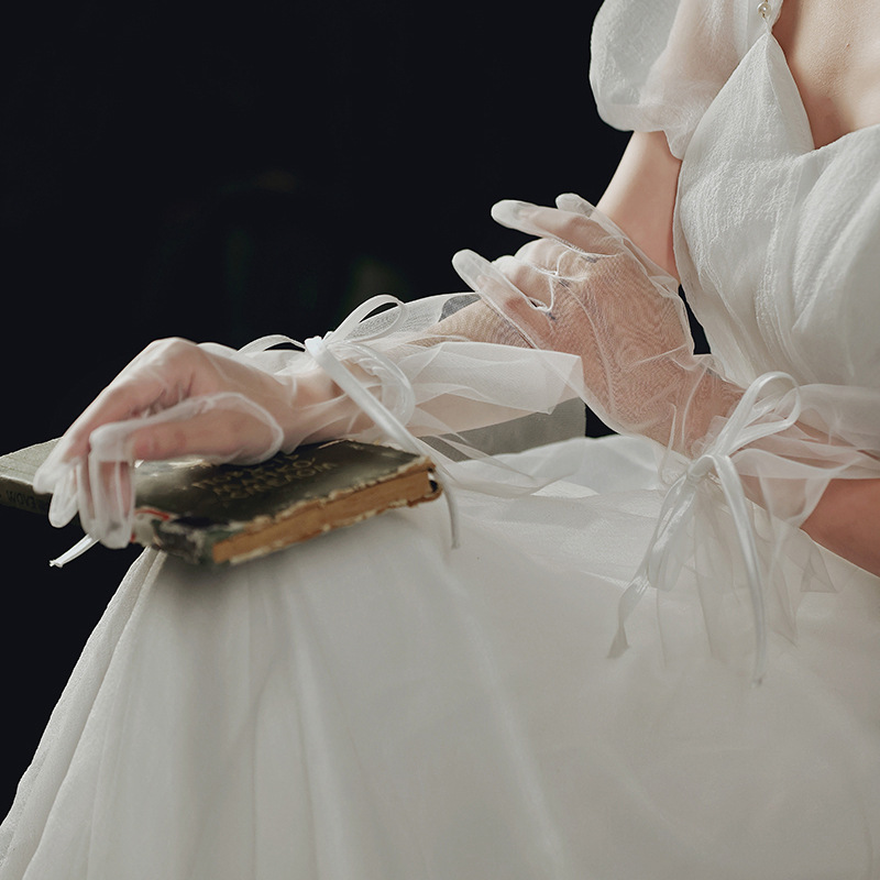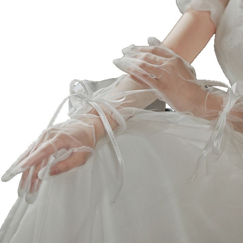 Свадебные перчатки невесты Свадебный этикет белая пряжа лента лук фотография стиль Мори простые фото перчатки для женщин 1129