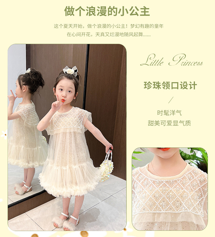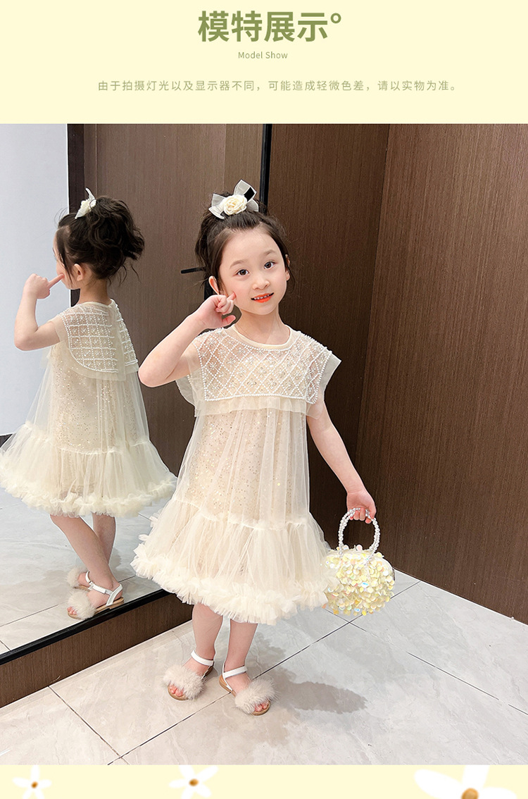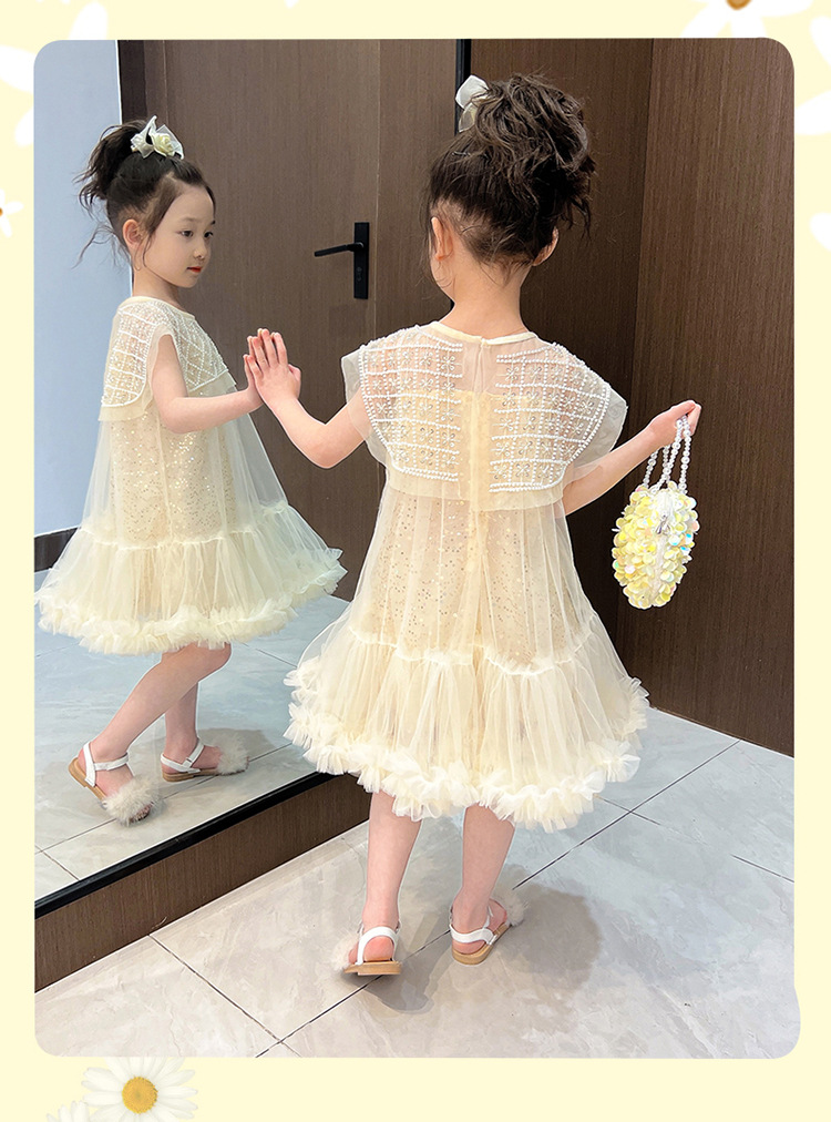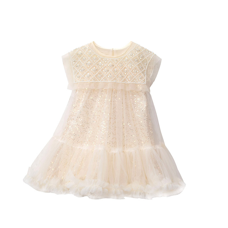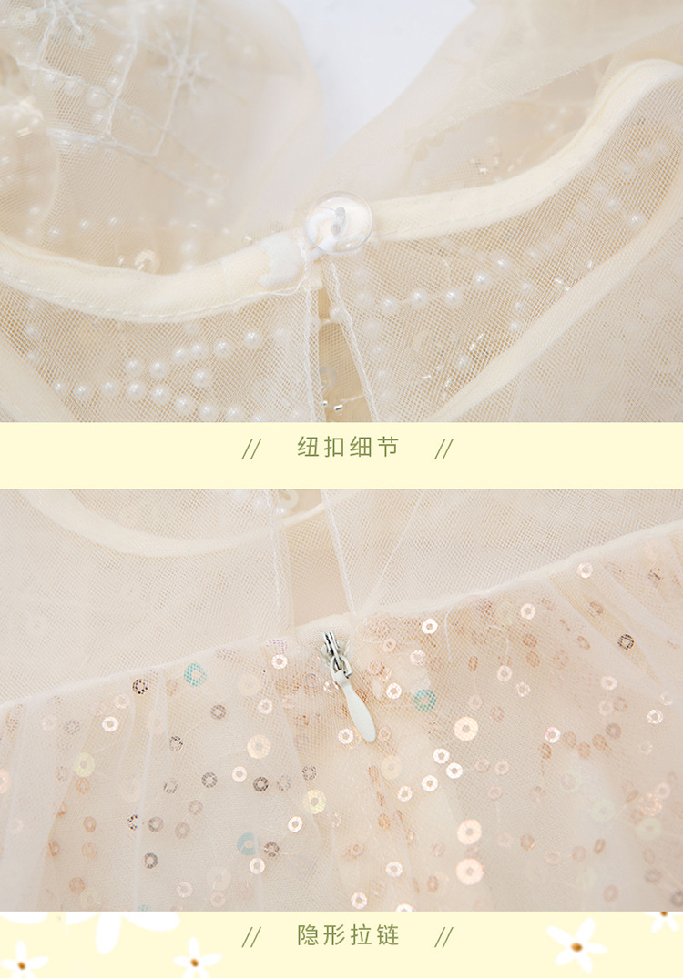 Абрикосовый жемчужный воротник блестки марлевая юбка обновление