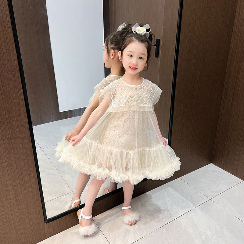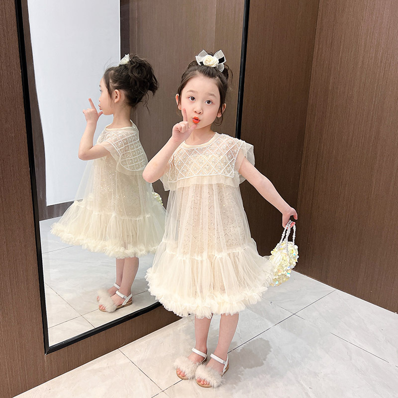 Летнее платье с большими качелями для девочек, тяжелое промышленное платье с жемчугом и блестками, платье-пачка для девочек, платье для выступлений