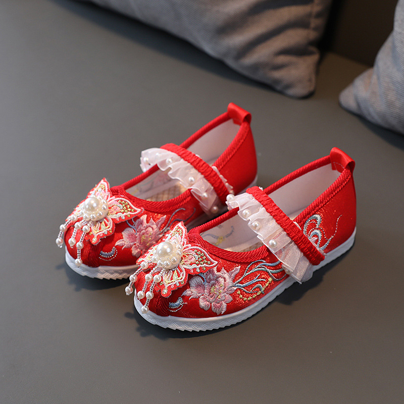 Обувь с вышивкой Hanfu, обувь для девочек в этническом стиле, обувь для выступлений, детская Тканевая обувь ручной работы, обувь в старинном стиле Hanfu, обувь для старинных костюмов