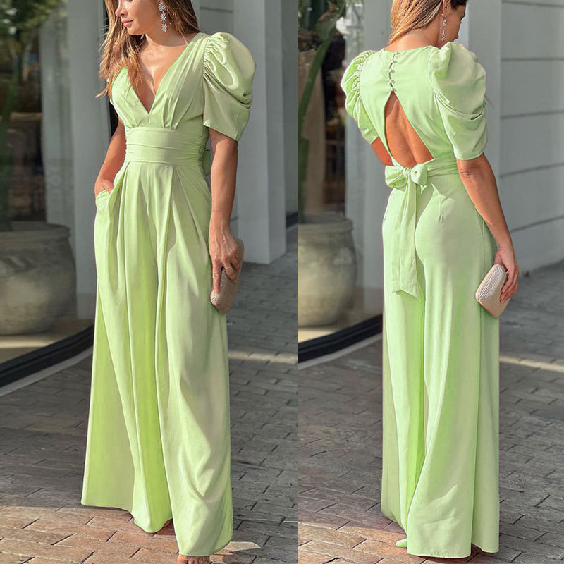 Новинка Amazon весна 2025: Модный женский комбинезон в европейском и американском стиле, элегантный, плиссированный, с V-образным вырезом и завышенной талией