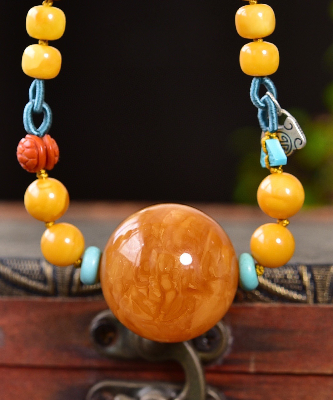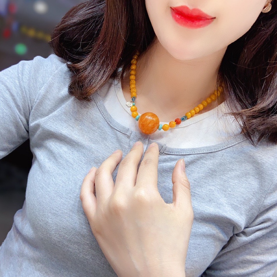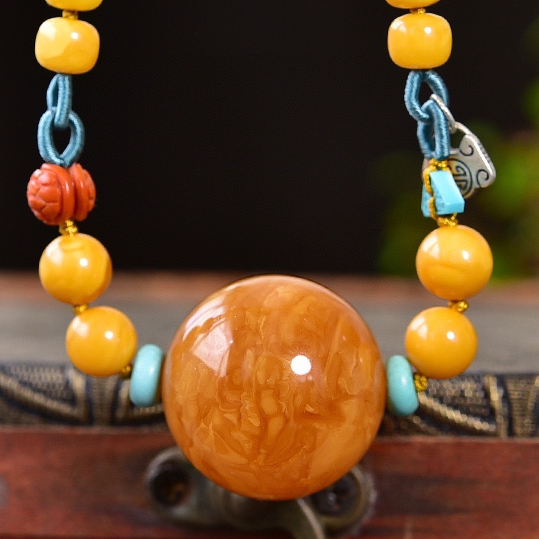 Ожерелье-цепочка из натурального старого воска с круглыми бусинами, цвет медово-красный, старый восковый цветок, оптовая продажа старого пчелиного воска