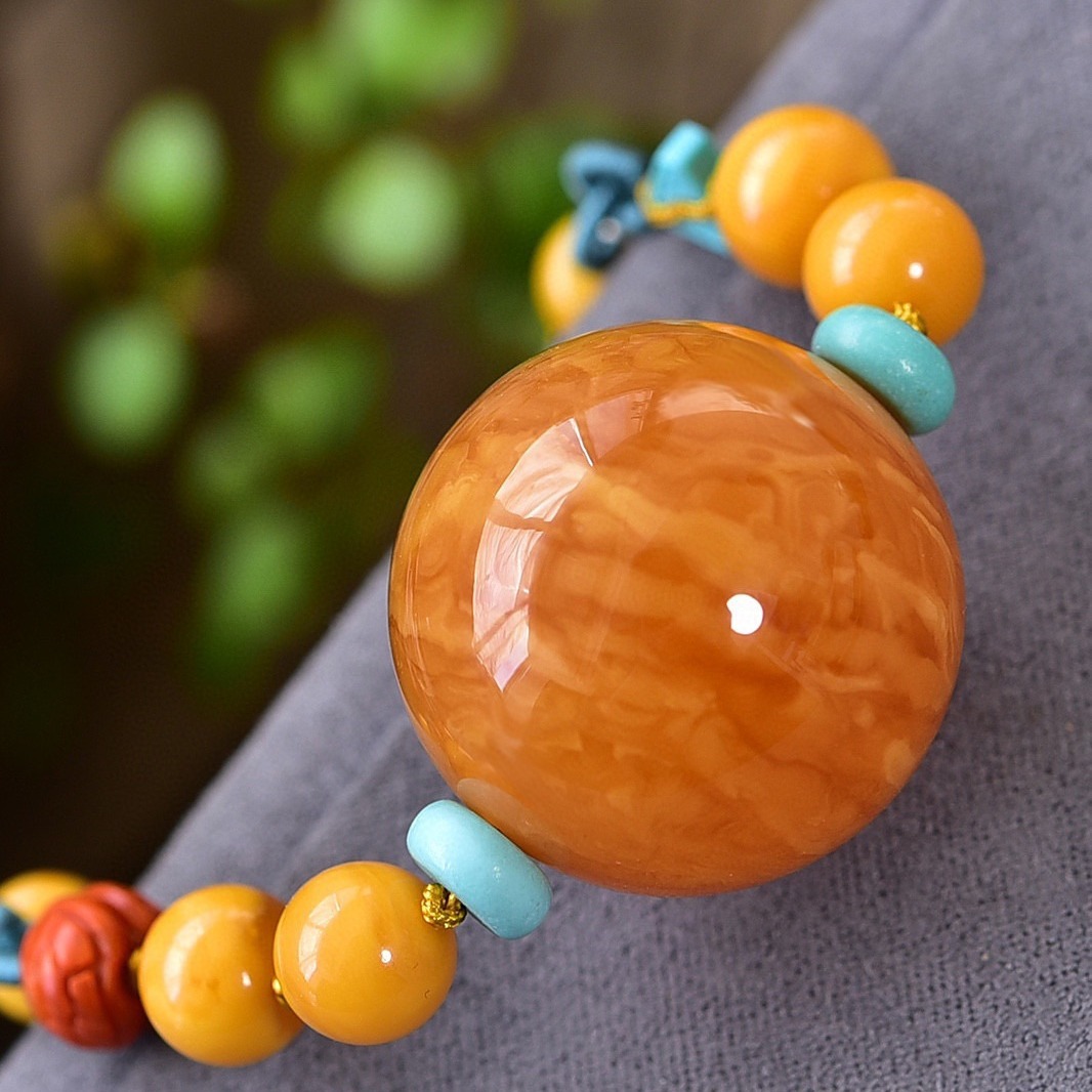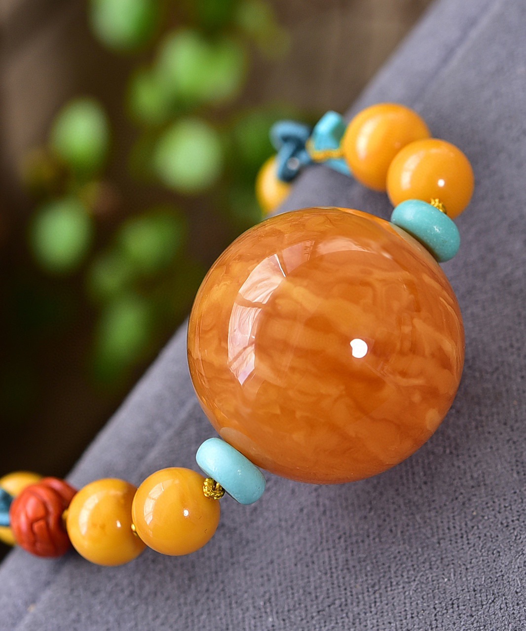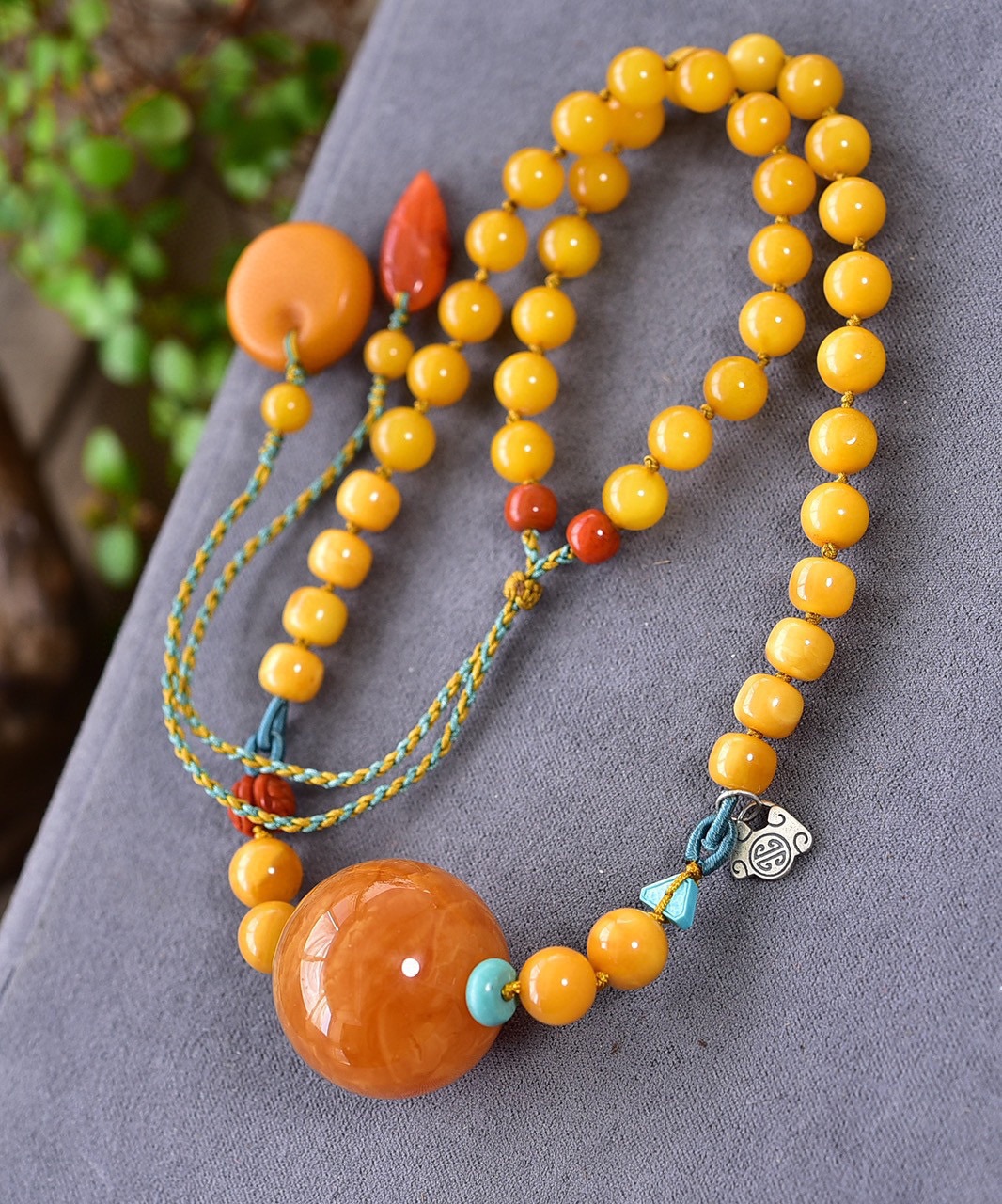Ожерелье-цепочка из натурального старого воска с круглыми бусинами, цвет медово-красный, старый восковый цветок, оптовая продажа старого пчелиного воска