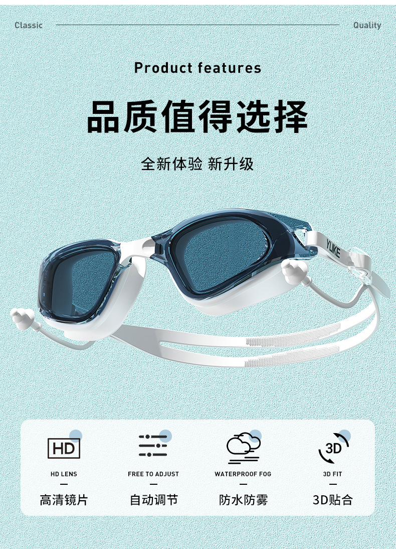 Очки для плавания HD, противотуманные, водонепроницаемые, очки для плавания в большой оправе, мужские и женские шапочки для плавания, комплект очков для плавания, специальное оборудование для дайвинга и плавания
