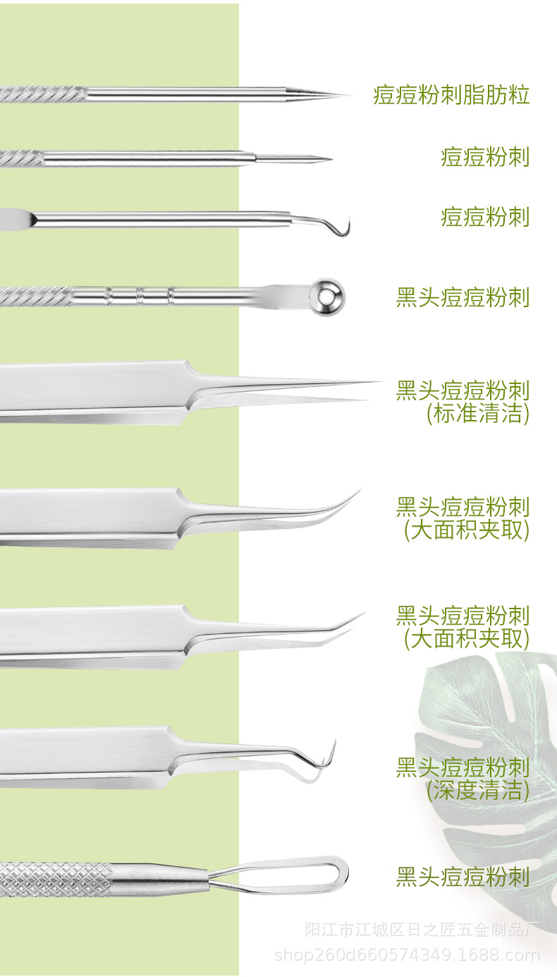 No 5, прямой зажим для рта; Изогнутый зажим No5 для рта; Скошенный рот No5; Изогнутый зажим No5 + пластиковая коробка; Наклонный зажим No5 + пластиковая коробка; Зажим для прямого рта No5 + пластиковая коробка; Набор из 4 игл от прыщей + пластиковая коробка; Комплект из 3 предметов No5 (прямой крючок наклонный) + пластиковая коробка; No 5 прямой зажим + 4 иглы; Косая клипса No5 + 4 иглы; Изогнутый зажим No5 + 4 иглы; Большой комплект из 8 предметов; Пинцет прямой + железный ящик; Наклонный пинцет + железный ящик; Пинцет с изогнутым носом + железный ящик; Супер острый прямой пинцет с термообработкой; Супер острый наклонный пинцет с термообработкой; Супер острый термообработанный изогнутый носовой пинцет; Супер острый прямой пинцет; Супер заостренный скошенный пинцет; Супер заостренный изогнутый пинцет для носа; увеличительное стекло; Прямой крючок наклонный + железный ящик; Прямая изогнутая игла + пластиковая коробка.