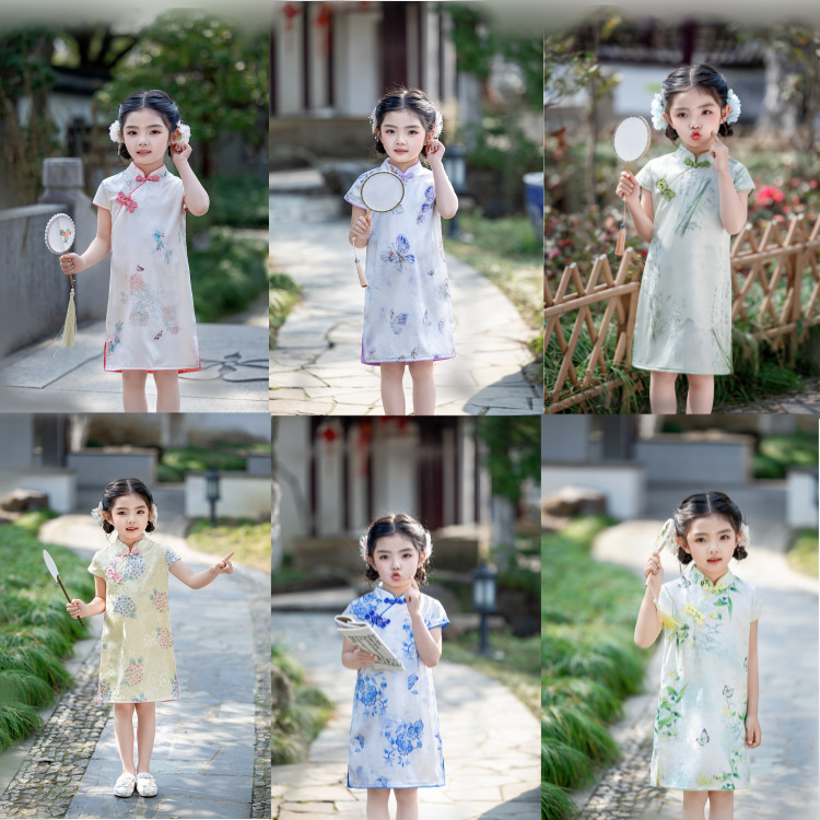 Детский костюм для выступлений Cheongsam, летнее платье в китайском стиле для девочек, костюм в национальном стиле Тан, древнее платье принцессы ханьфу
