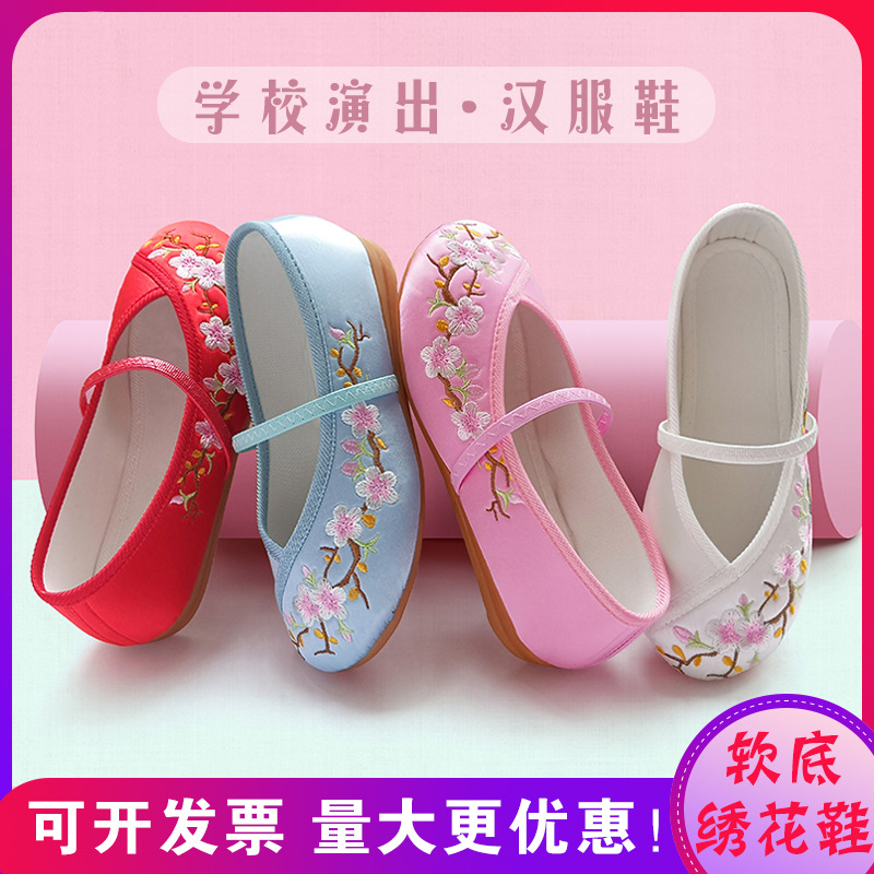 Детская обувь с вышивкой Обувь ханьфу для девочек Танцевальная обувь в китайском стиле Старинная модельная обувь Обувь с вышивкой Old Beijing Тканевая обувь Обувь для выступлений