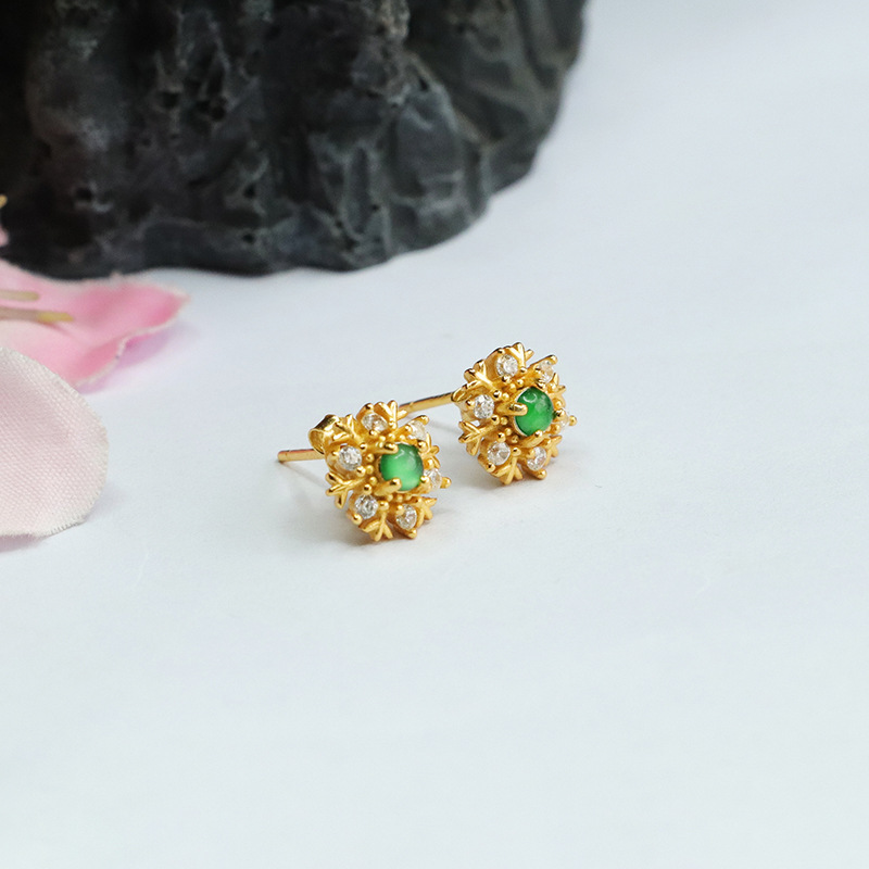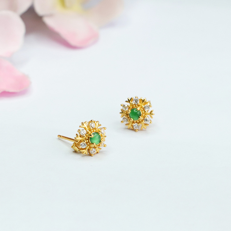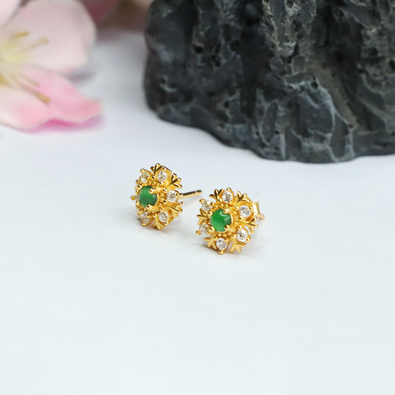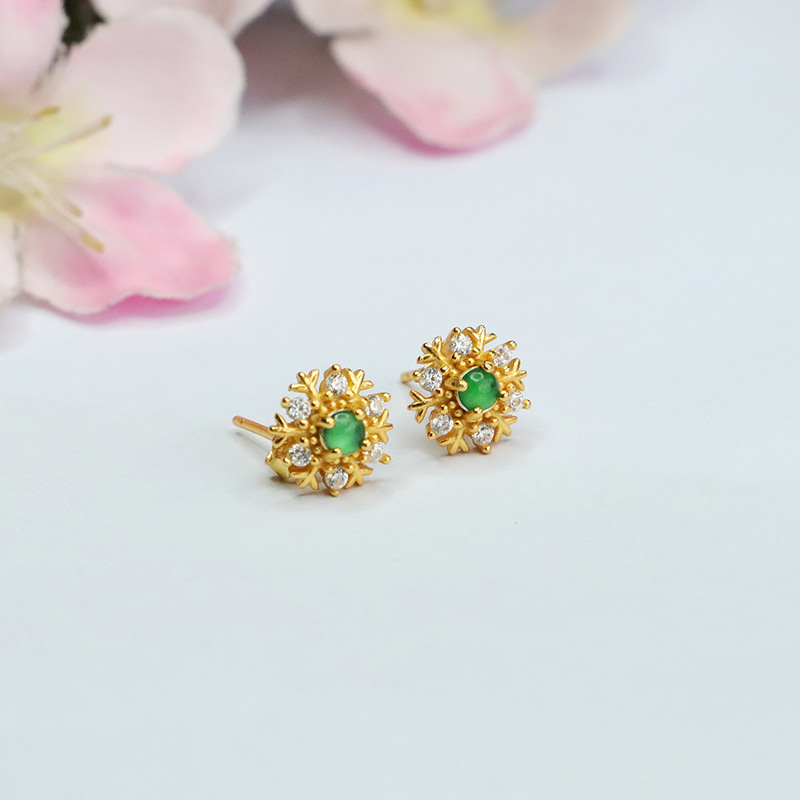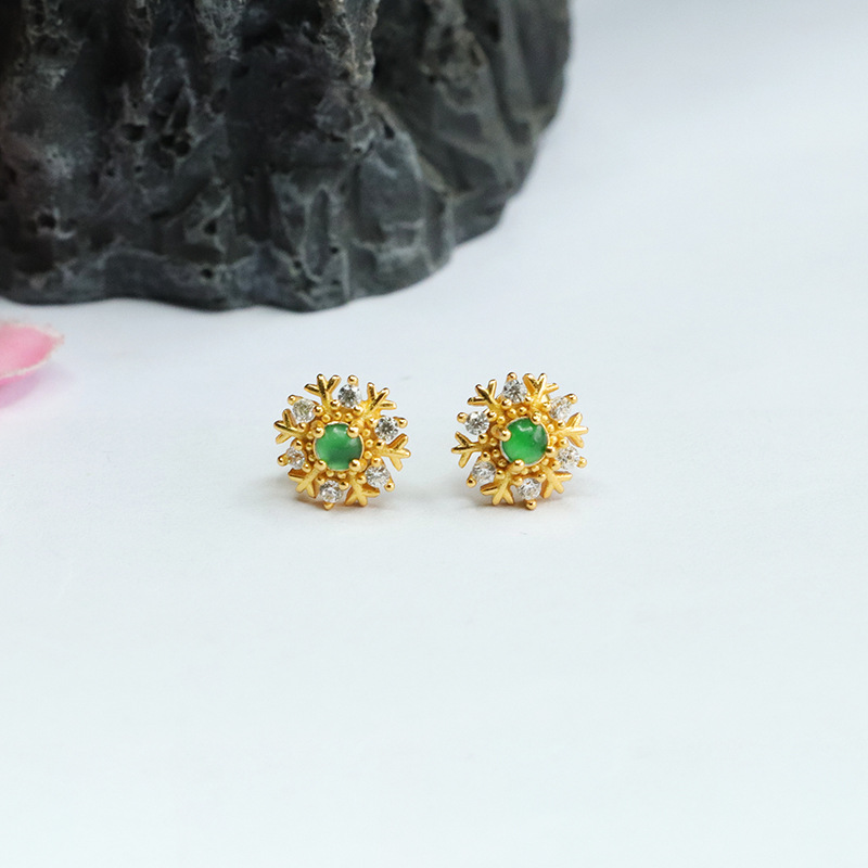 Yuyu S925 серебряные инкрустированные натуральным Жадеитом серьги Ice King зеленые серьги снежинки оптовая продажа с фабрики FC3032006