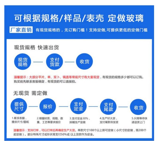 Шелкография, антибликовое покрытие (AR), антиотражающее покрытие (AF), полировка краев, фильтрация синего света.