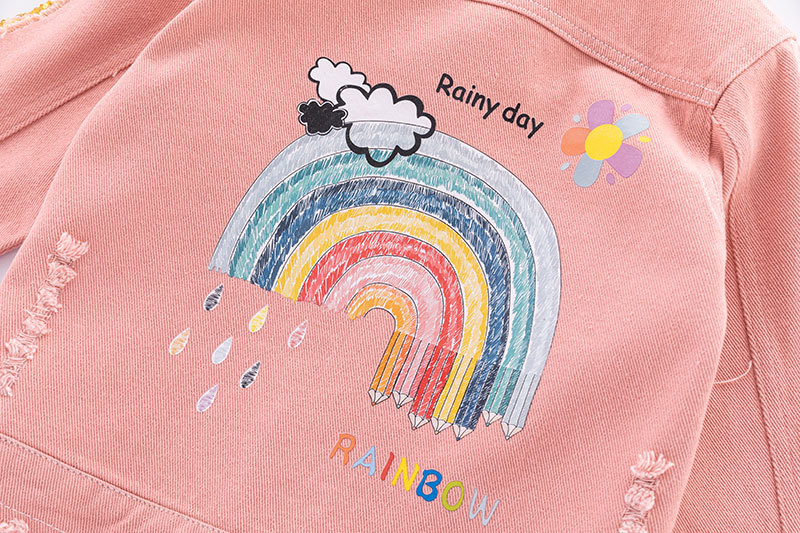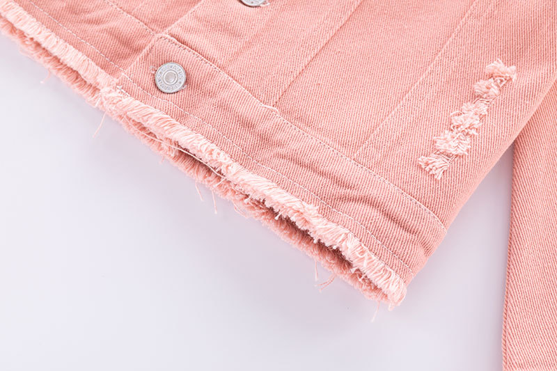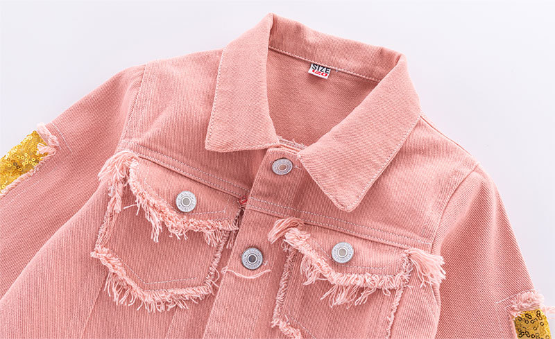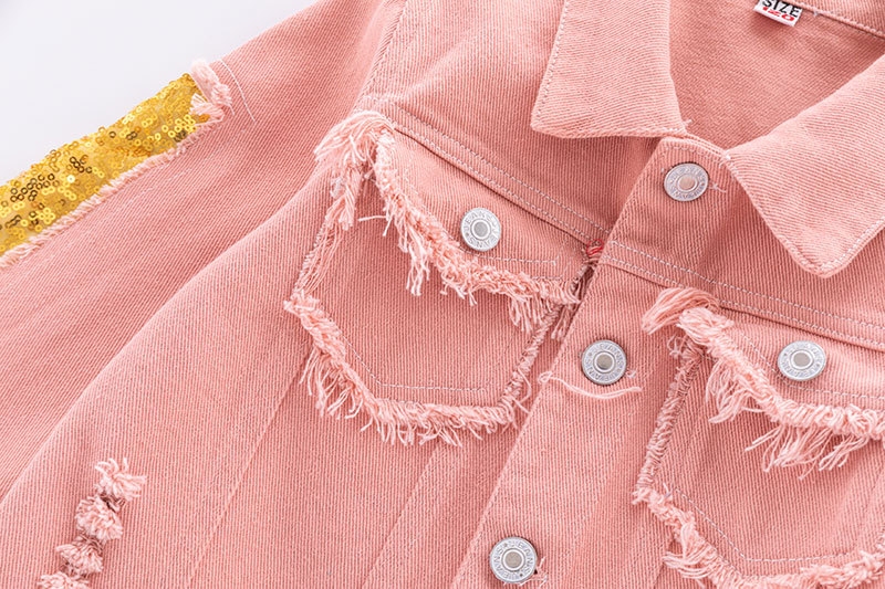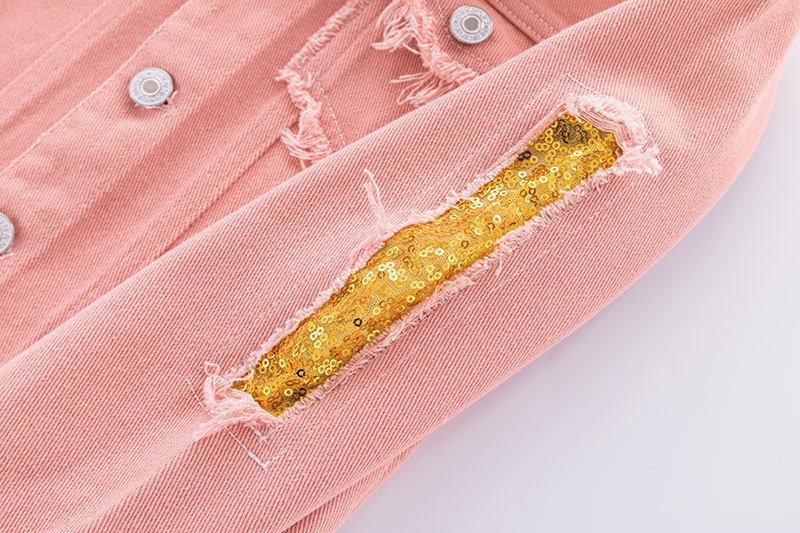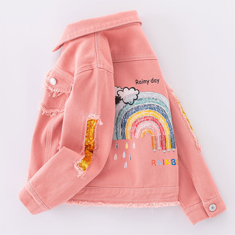 Детская одежда Джинсовая куртка для девочек, модная розовая потертая рваная джинсовая куртка, детский топ с радужными блестками