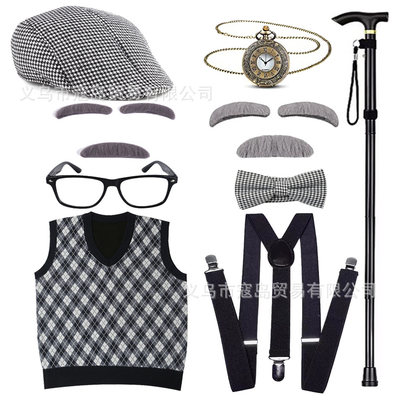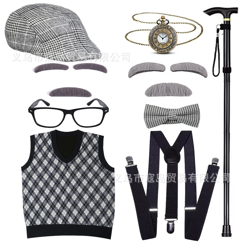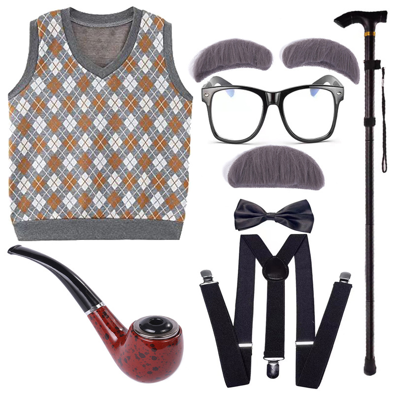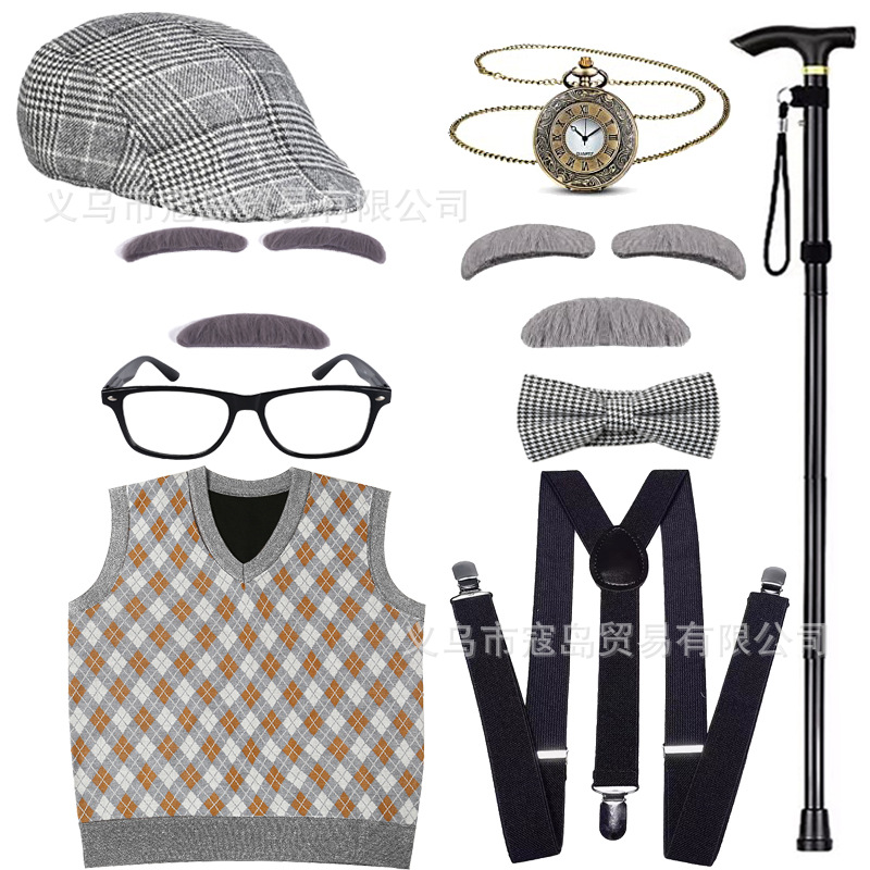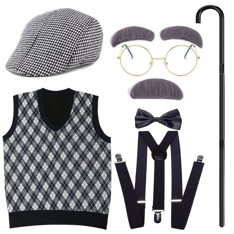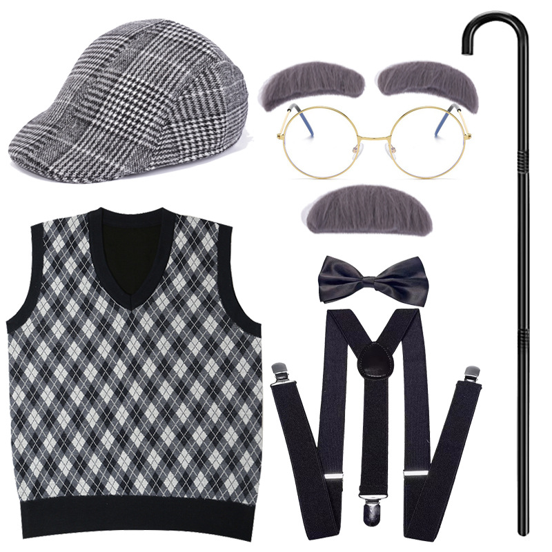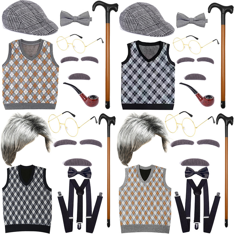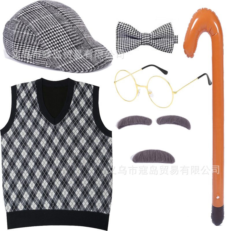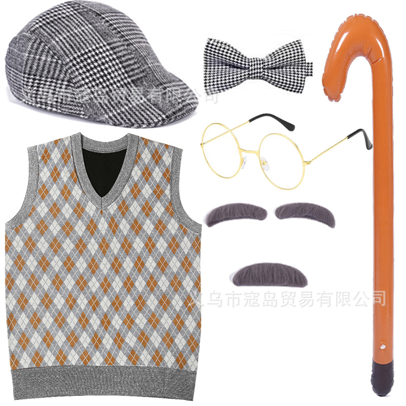 Хэллоуин детский дедушка бабушка парик Для Взрослых Надувной костыль жилет для стариков парик борода платье вверх