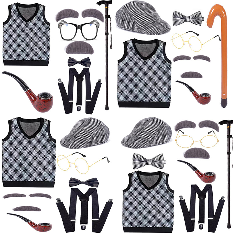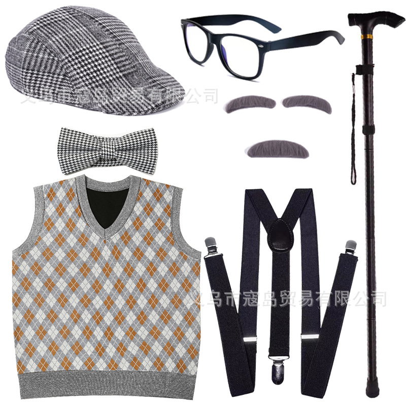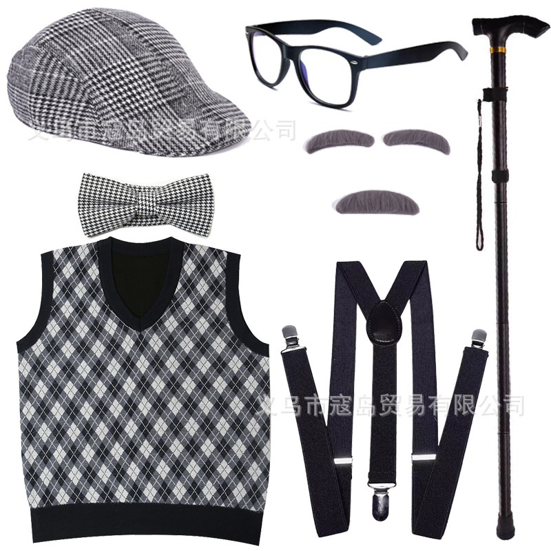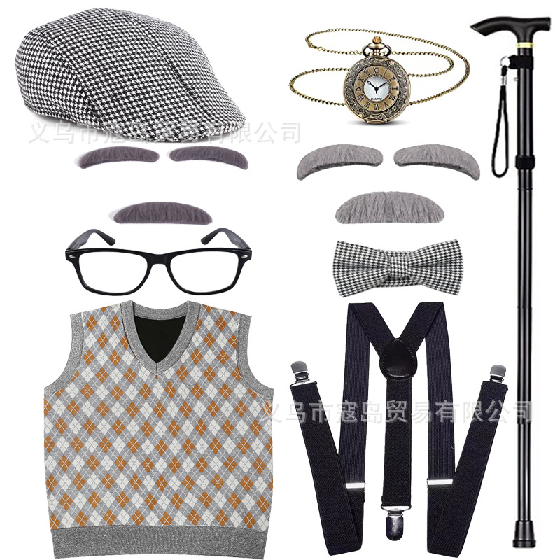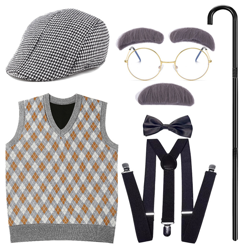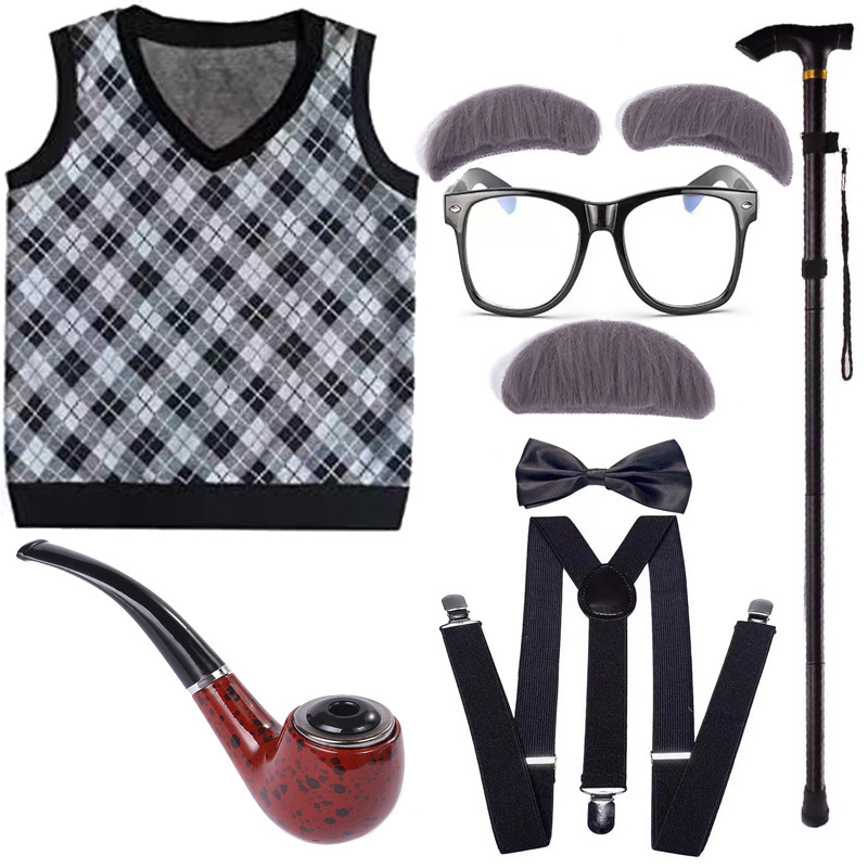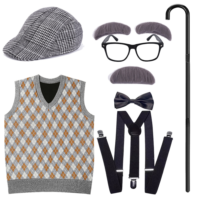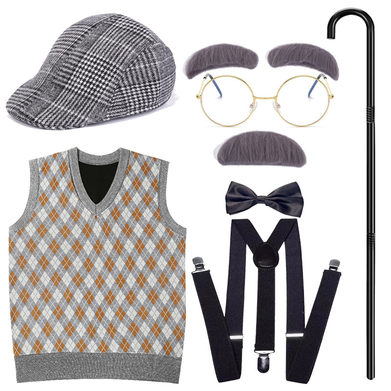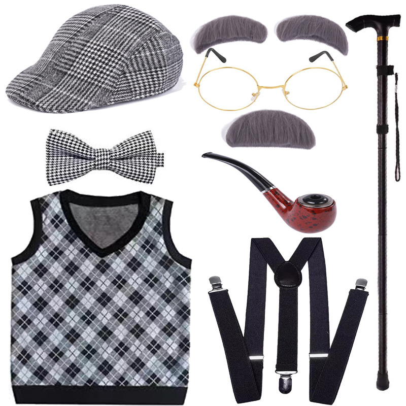 Хэллоуин детский дедушка бабушка парик Для Взрослых Надувной костыль жилет для стариков парик борода платье вверх