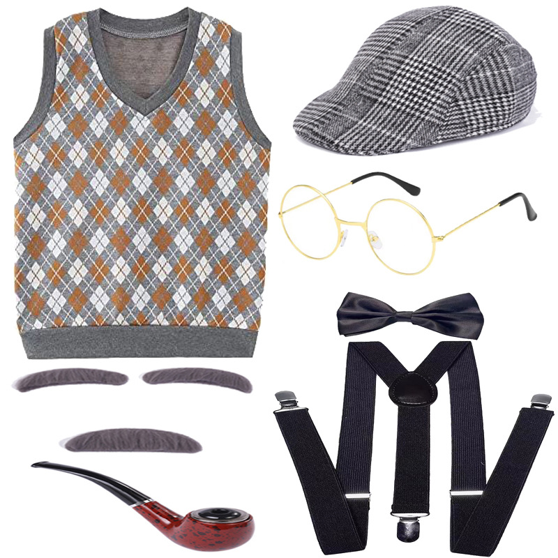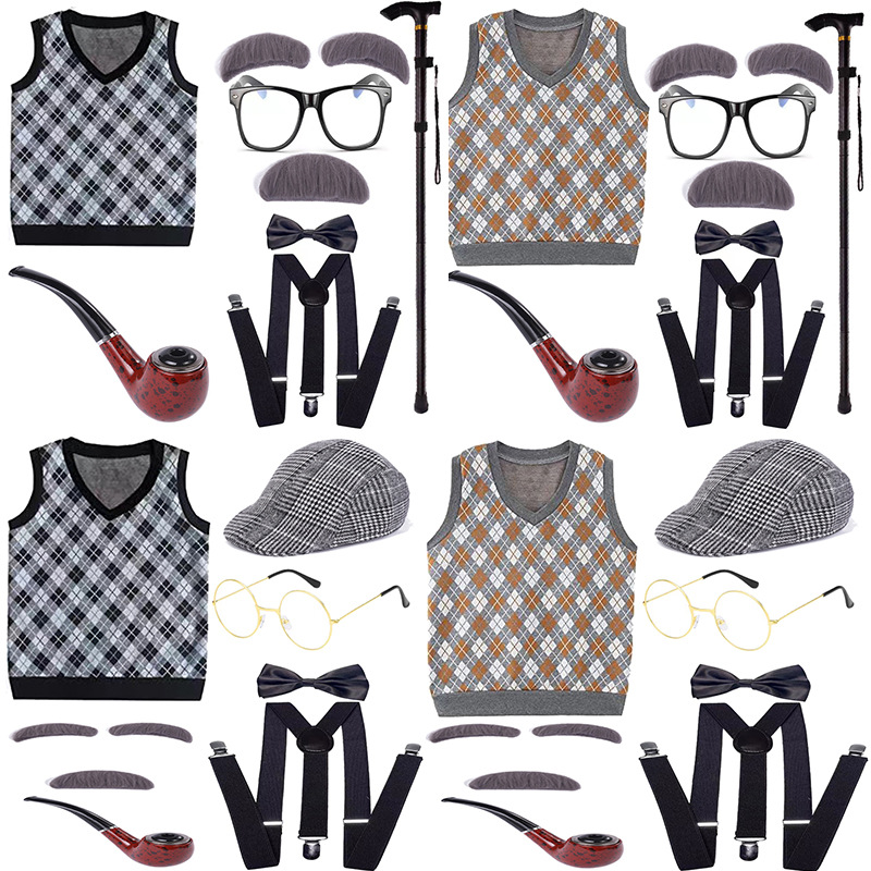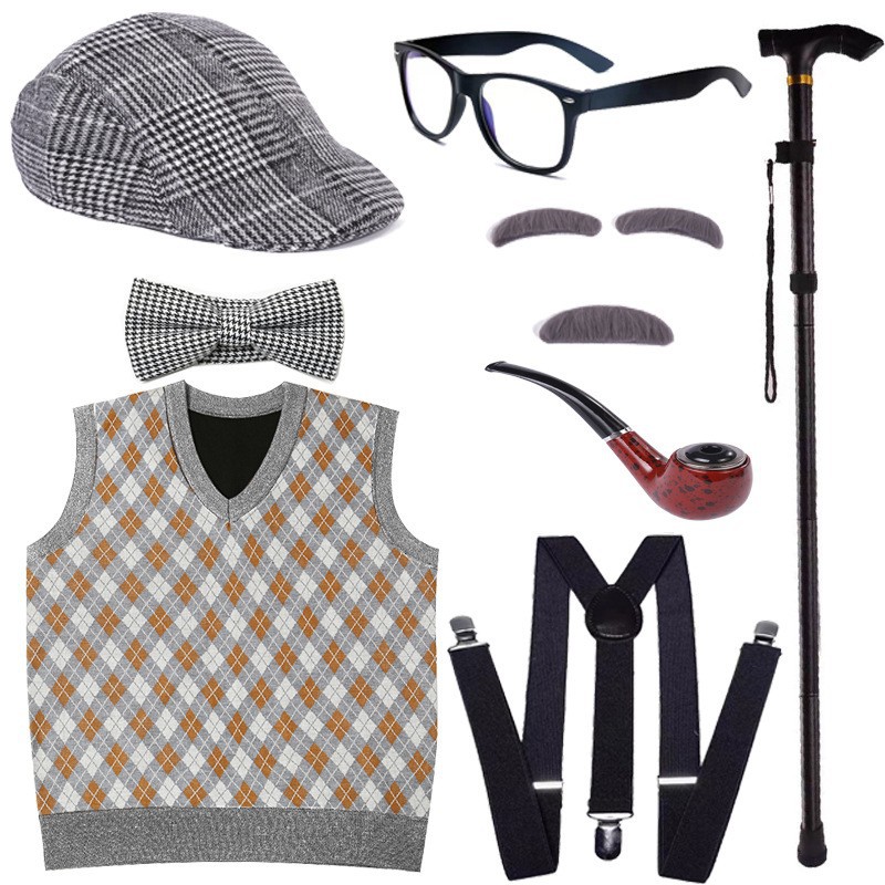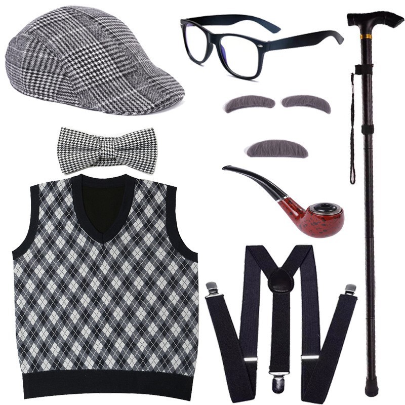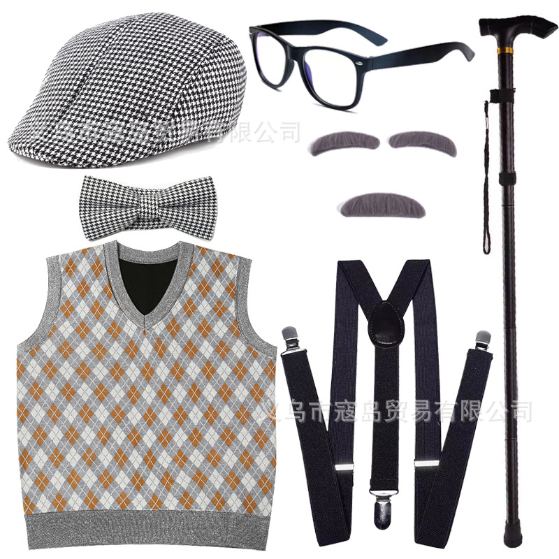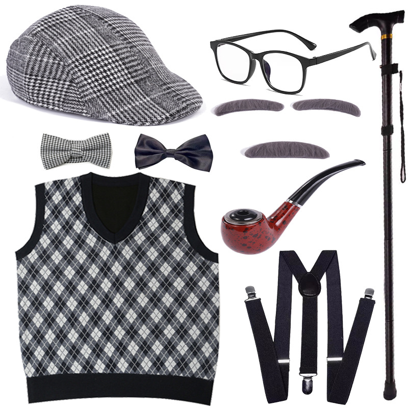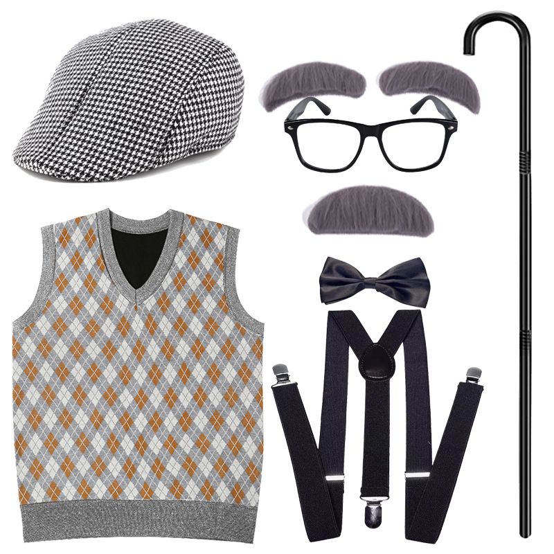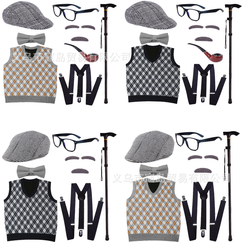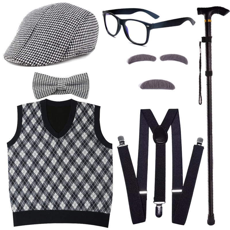 Хэллоуин детский дедушка бабушка парик Для Взрослых Надувной костыль жилет для стариков парик борода платье вверх