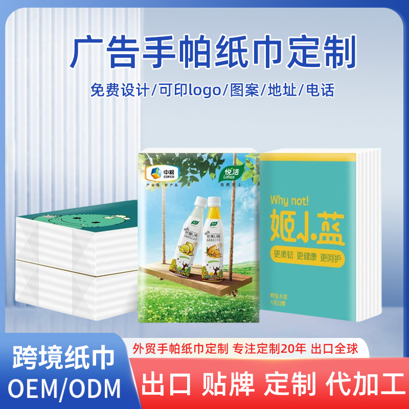 Индивидуальные салфетки-платочки для экспорта, 4-слойные (6 шт.), 3-слойные (8 шт.), бумажные платочки, рекламные бумажные платочки на заказ.