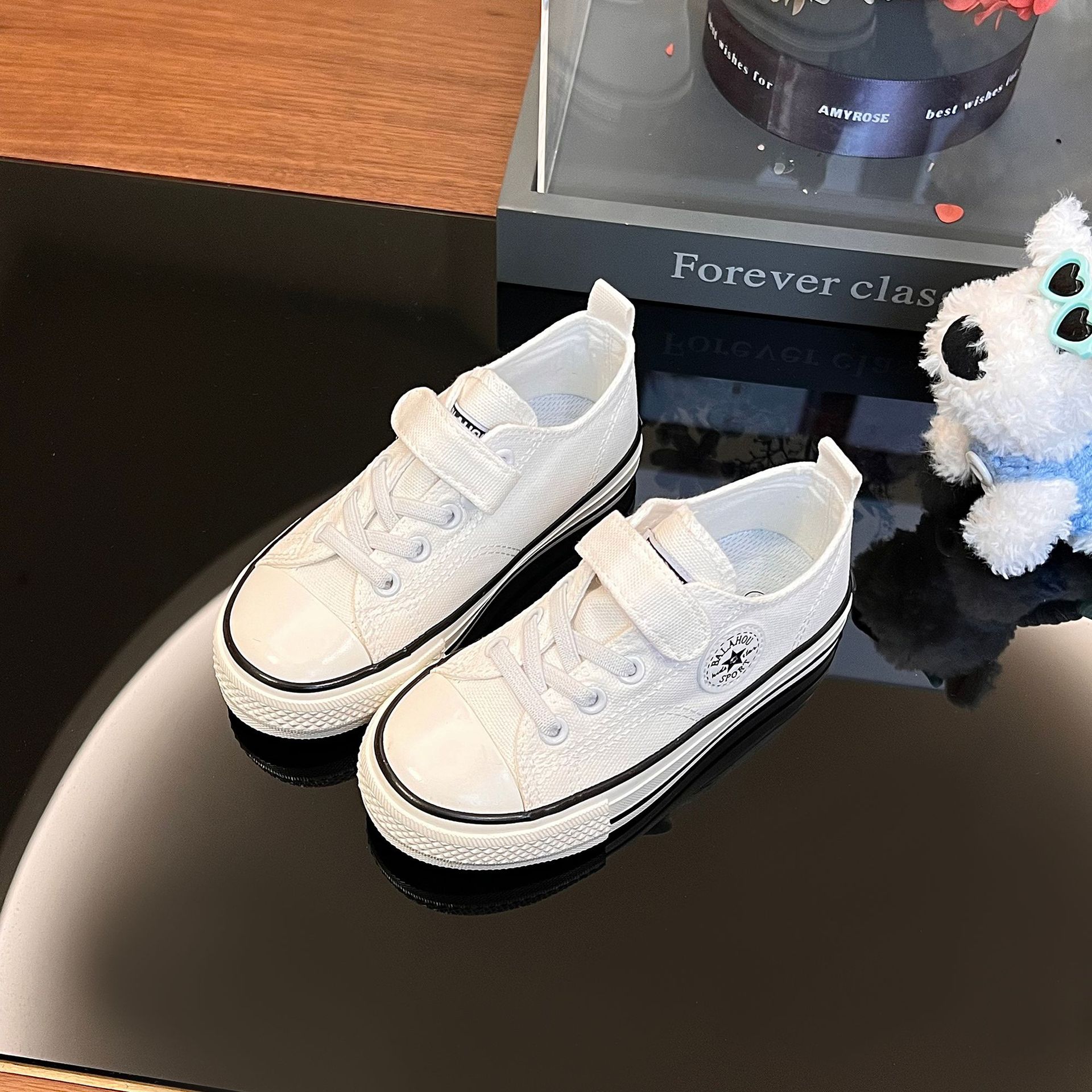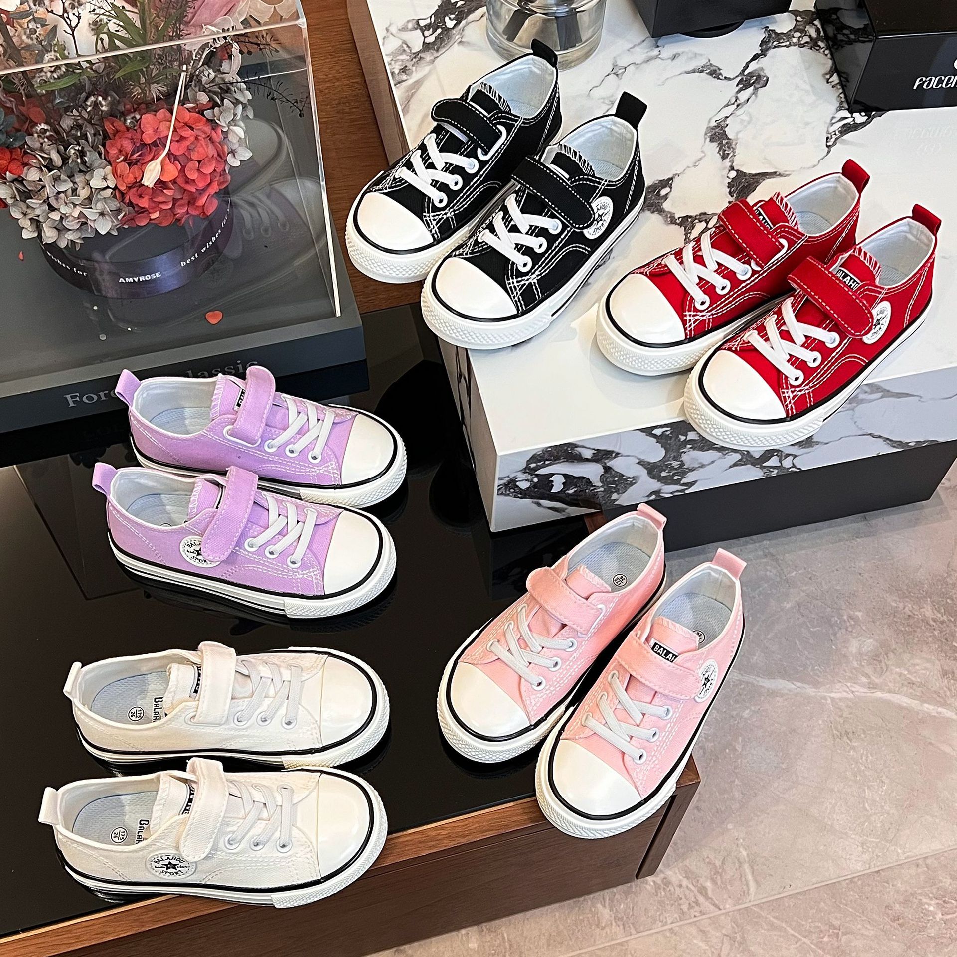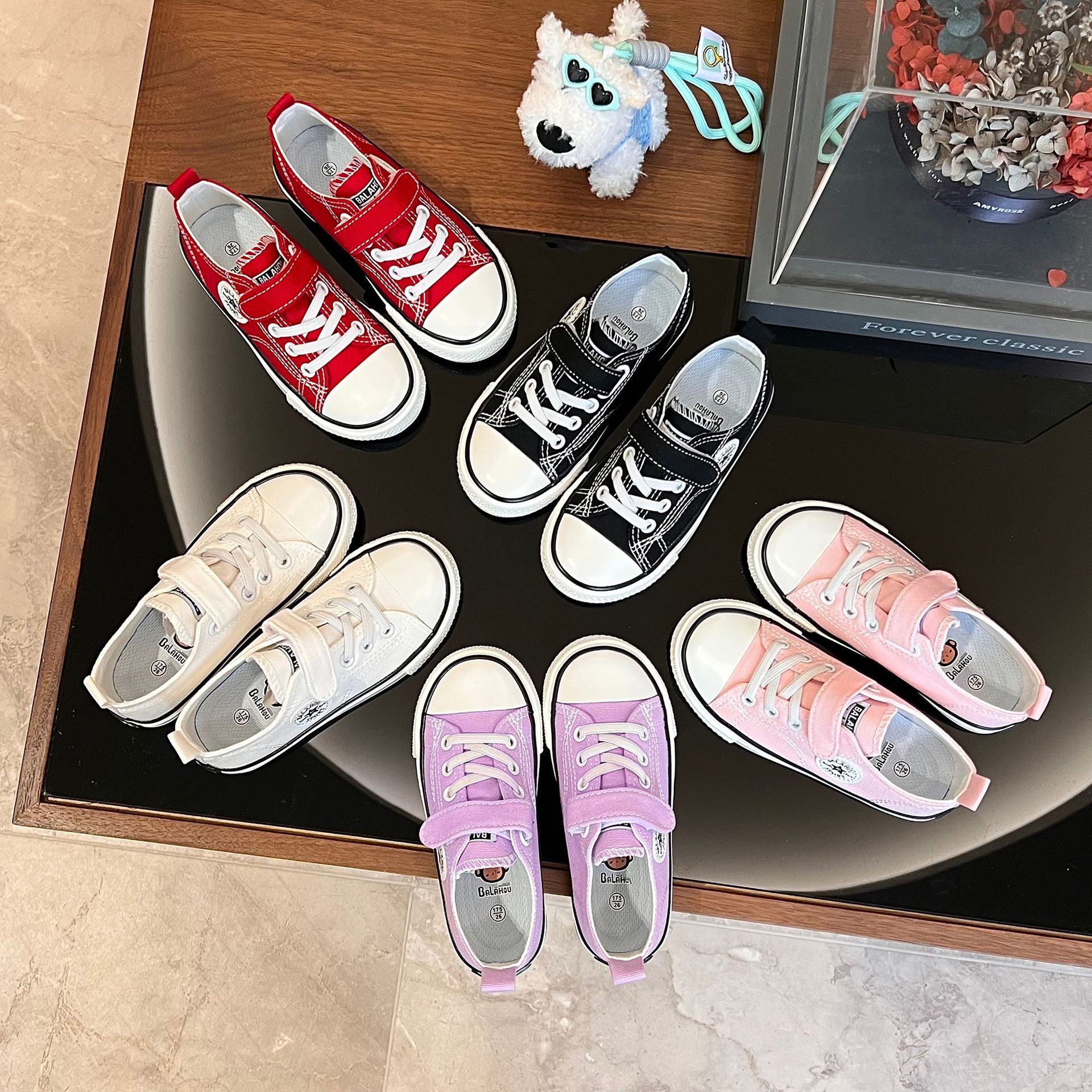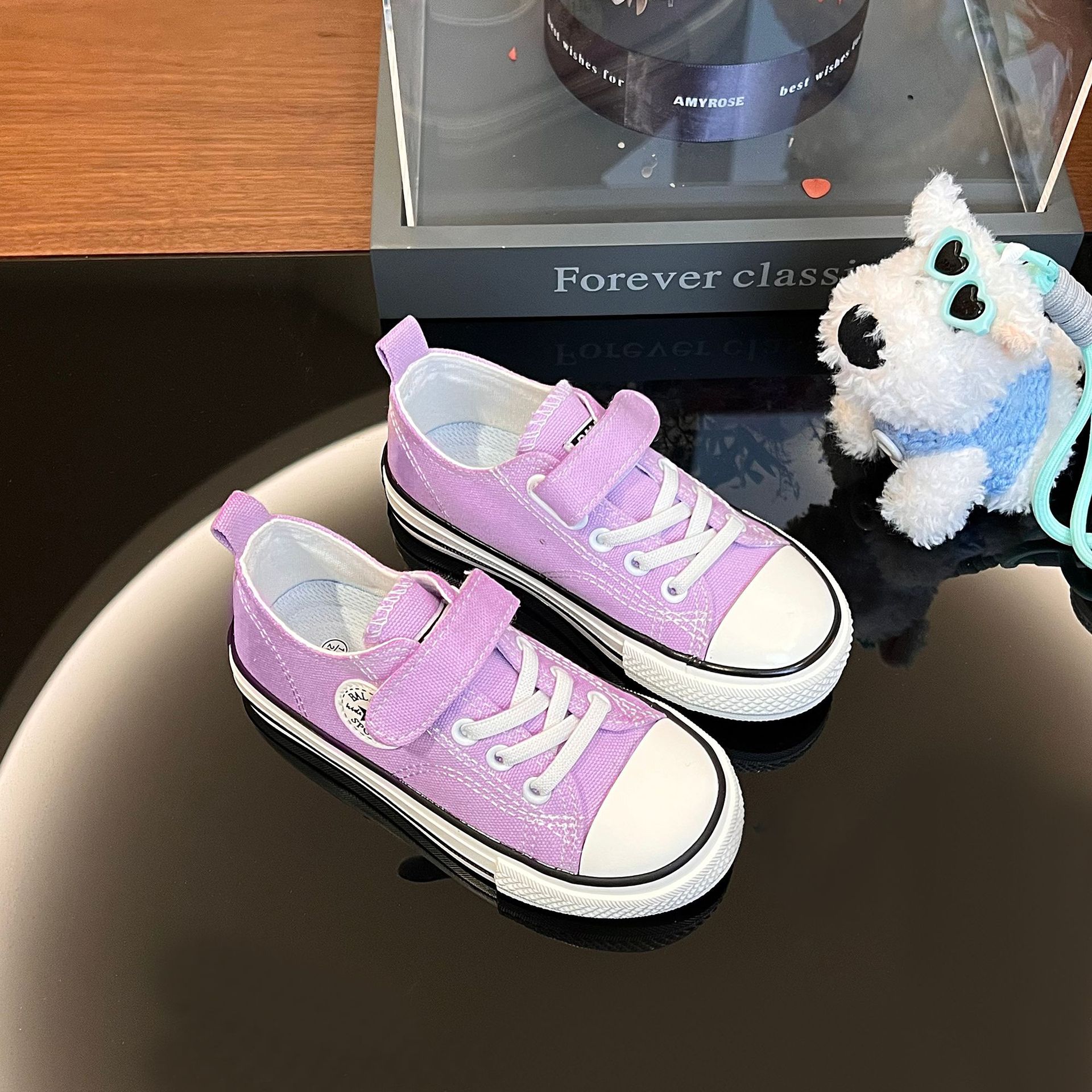 Детские кеды на липучках из канваса, весна 2026, новая модель, для мальчиков и девочек, маленькие, средние и большие размеры, студенческие кроссовки, мягкая подошва, модные детские туфли