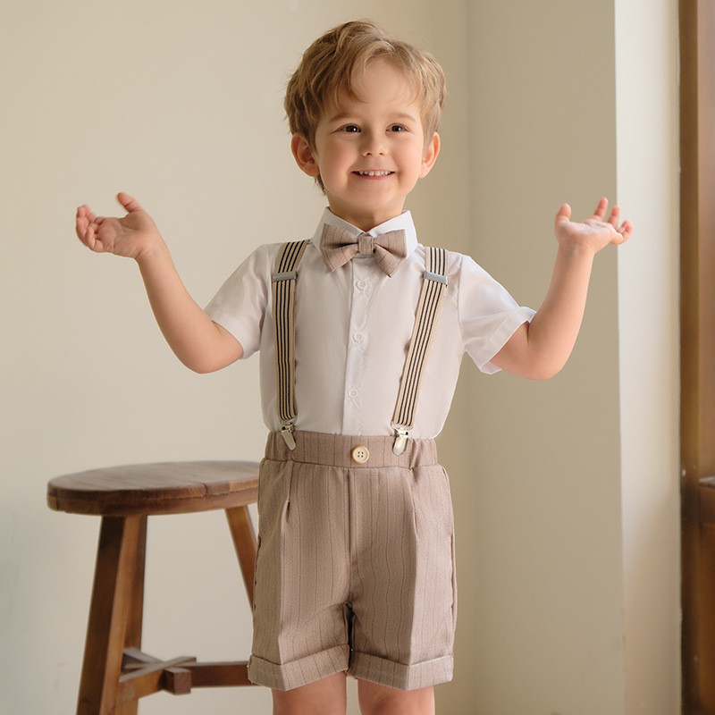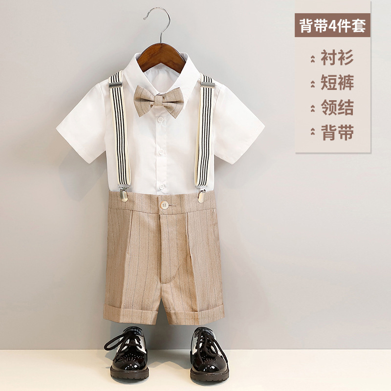 Детский костюм Длинные шорты на ремешке для мальчика, жилет, рубашка, костюм для занятий в детском саду, детское платье с цветочным принтом на день рождения