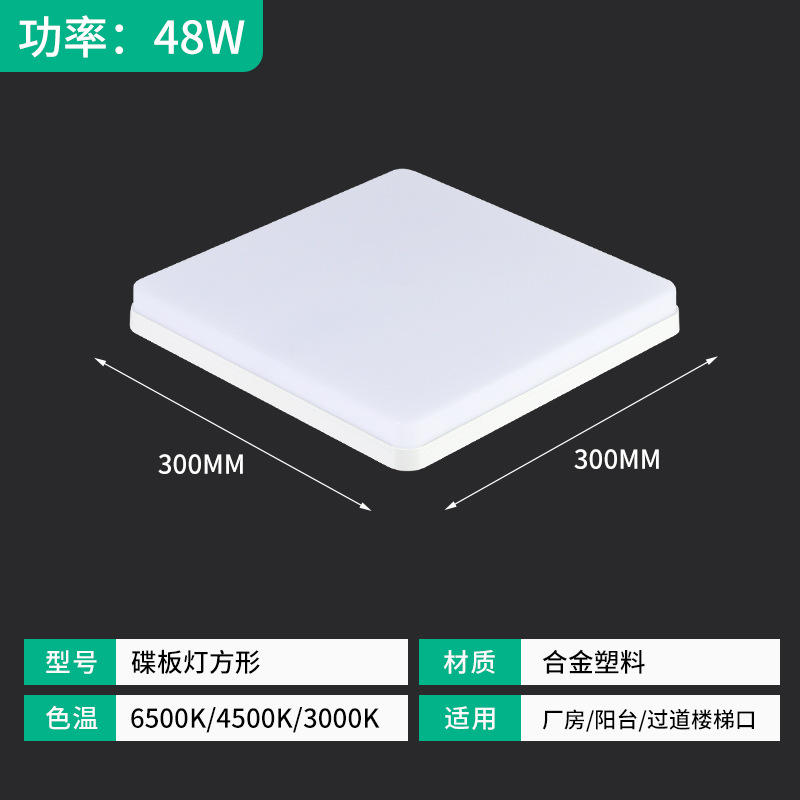 Свет дисковой панели, светодиодный кухонный светильник с плоской панелью, светящийся 300*300, панельный светильник, балкон, коридор, накладной светильник с квадратным диском