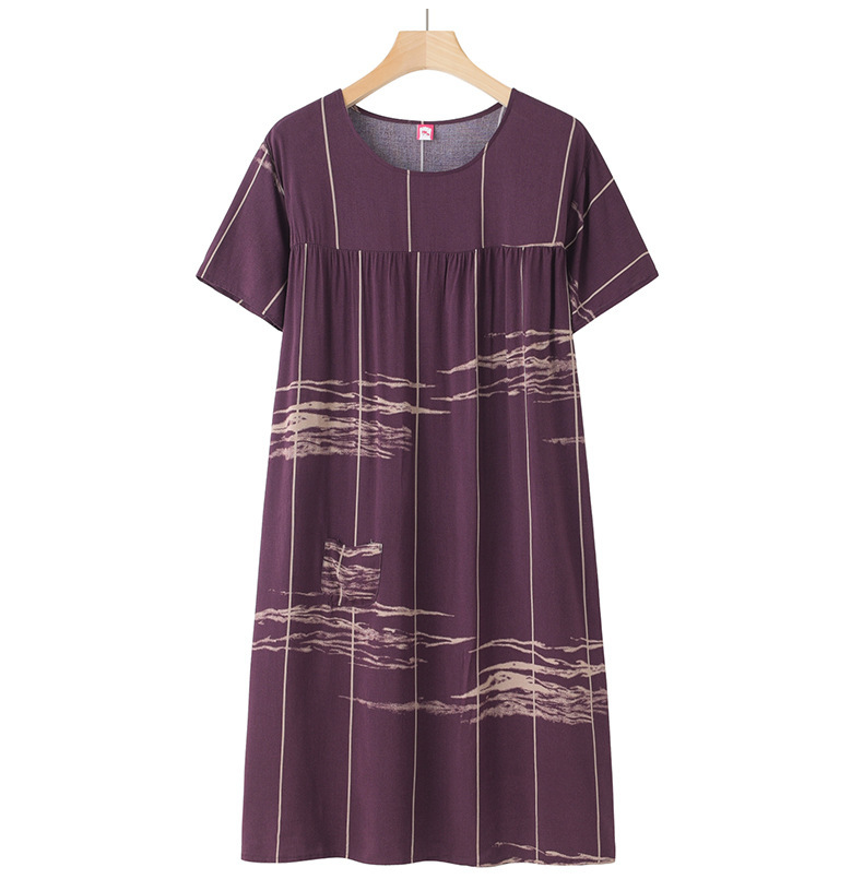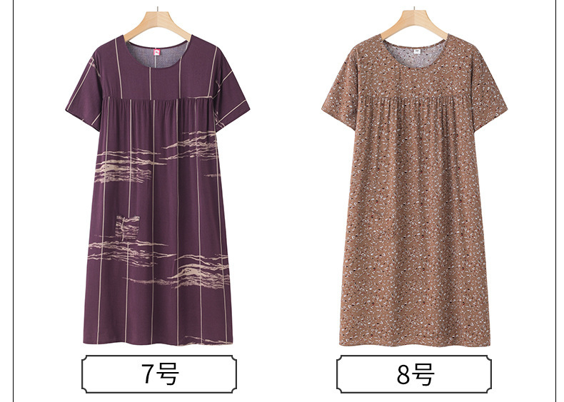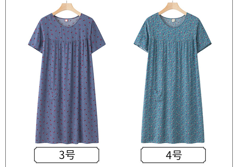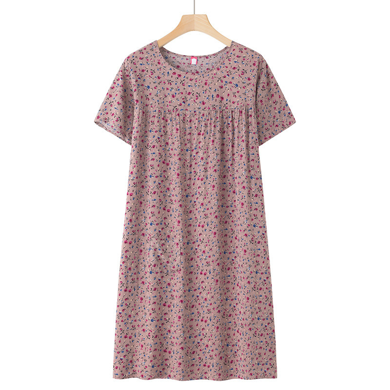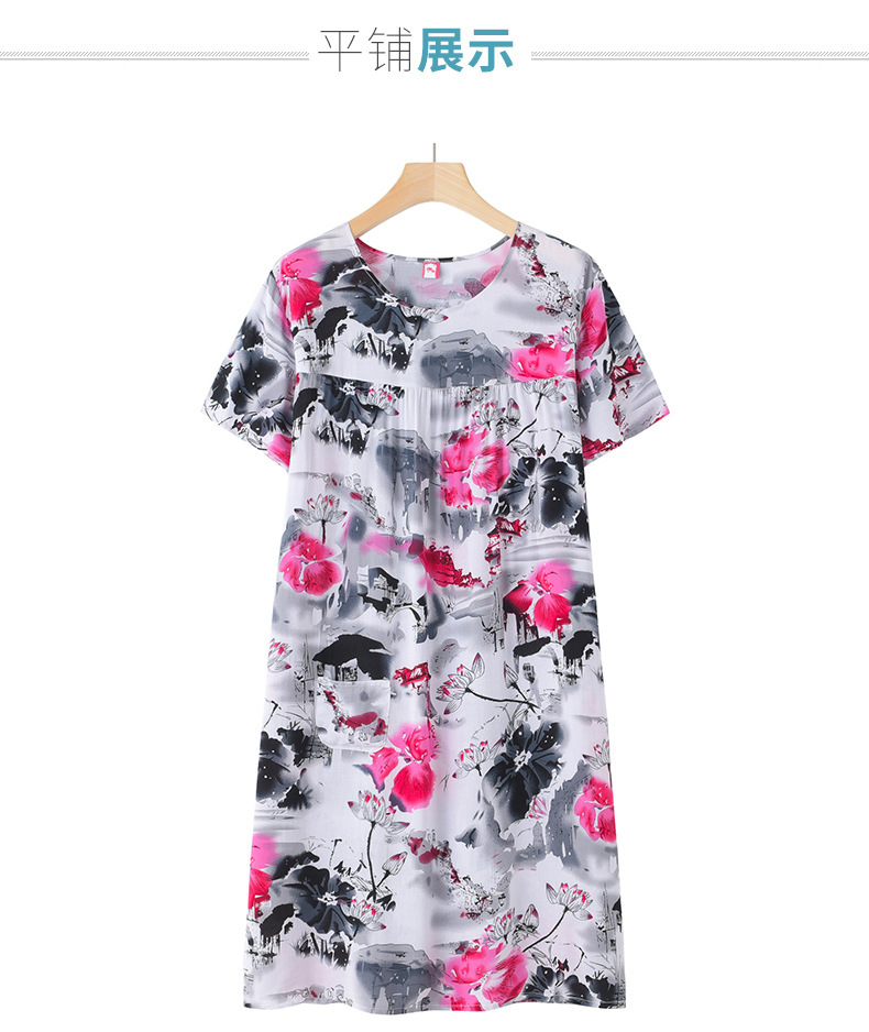 Хлопково-шелковая ночная рубашка с короткими рукавами для женщин среднего и старшего возраста, новая модель пижамы, летний тонкий вариант, свободное домашнее платье для мам, летняя коллекция.