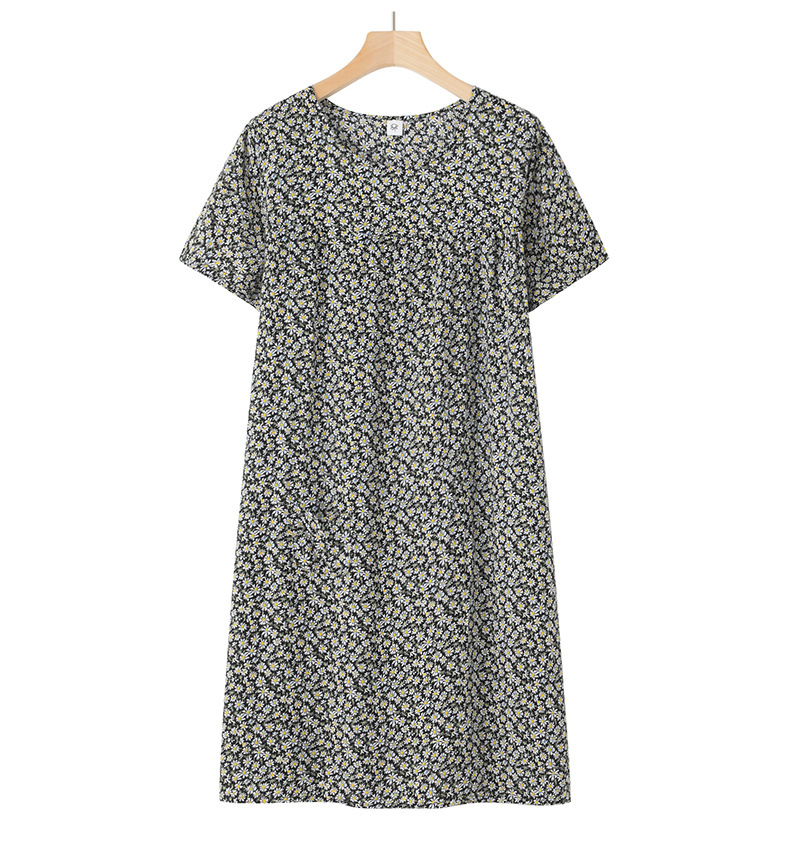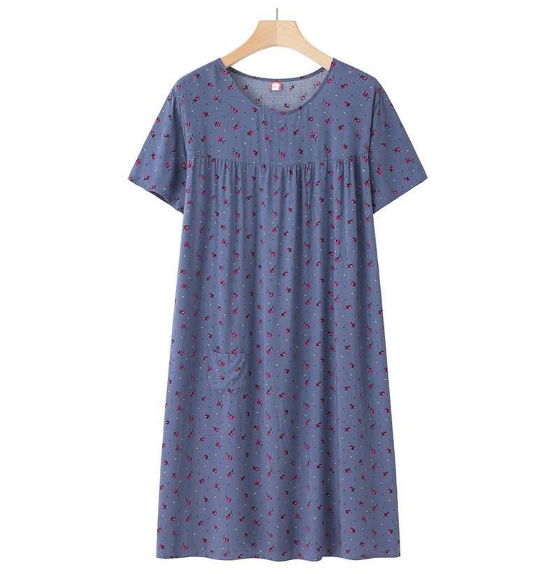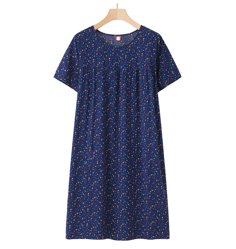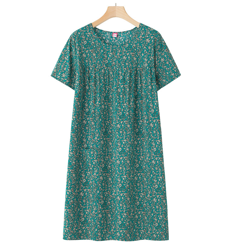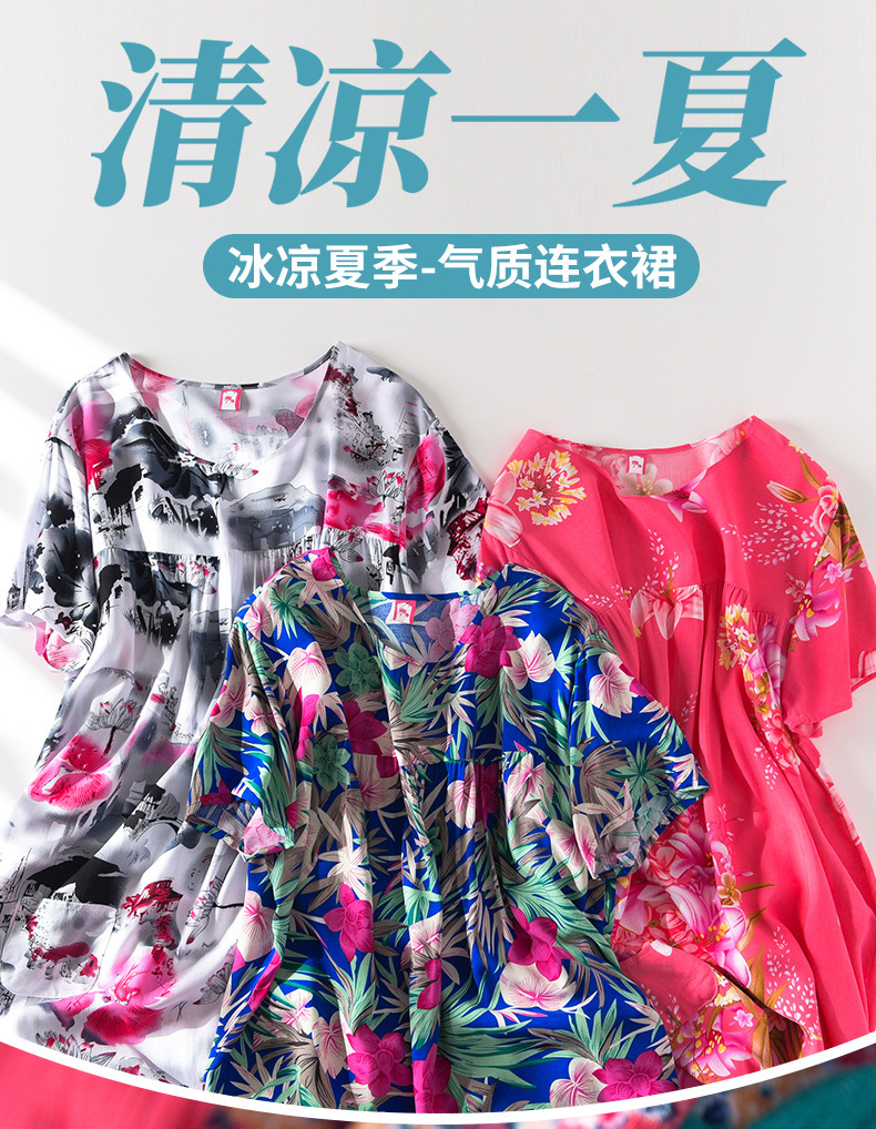 Хлопково-шелковая ночная рубашка с короткими рукавами для женщин среднего и старшего возраста, новая модель пижамы, летний тонкий вариант, свободное домашнее платье для мам, летняя коллекция.