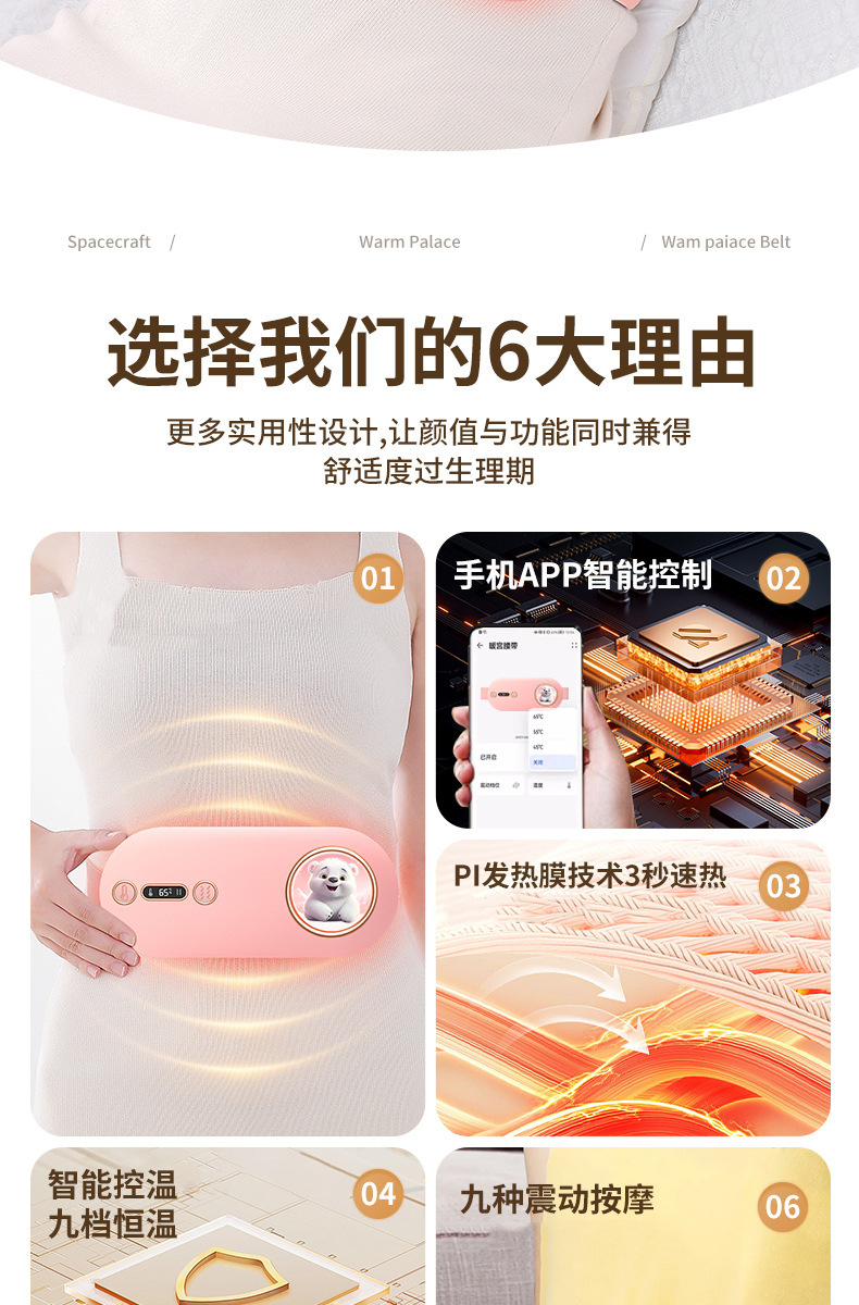 Греющий пояс для облегчения менструальных болей, перезаряжаемый электрический пояс с подогревом для женщин, горячий компресс-массажер, устройство для снятия менструальных болей.
