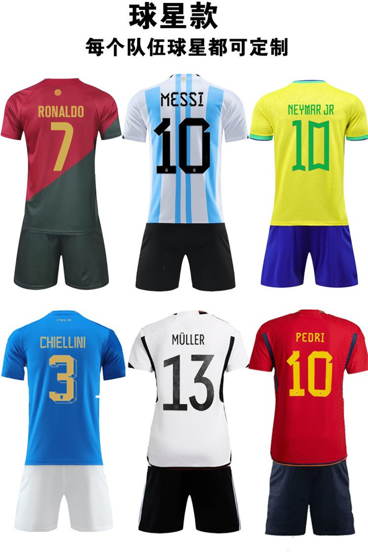 A7 Аргентина легкая версия топ + брюки; A6 Аргентина размер 10 топ + брюки; А6 Аргентина №10 в комплекте с носками светло-голубого цвета.; А6 Аргентина №10 в комплекте с носками светло-голубого цвета + щитки на голень.; Топ + брюки A7, бразильская легкая версия; A6 Бразилия, размер 10, топ + брюки; Бесплатные желтые носки A6 Бразилия №10; A6 Бразилия №10 в подарок желтые носки + щитки на голень; A7 португальская легкая версия топ + брюки; А6 Португалия №7 топ + брюки; A6 Португалия №7 в подарок красные носки; A6 Португалия №7 поставляется с красными носками + щитками на голень.; А6 немецкий размер 13 топ + брюки; Бесплатные белые носки немецкого размера 13 А6; Бесплатные белые носки A6 немецкого №13 + щитки на голень; Французский размер 10 А6, топ + брюки; Бесплатные носки французского размера 10 А6; Бесплатные носки французского размера 10 А6 + щитки на голень