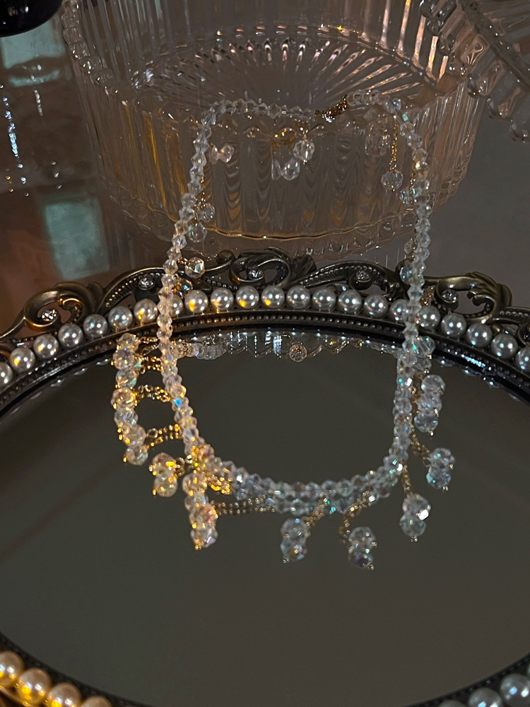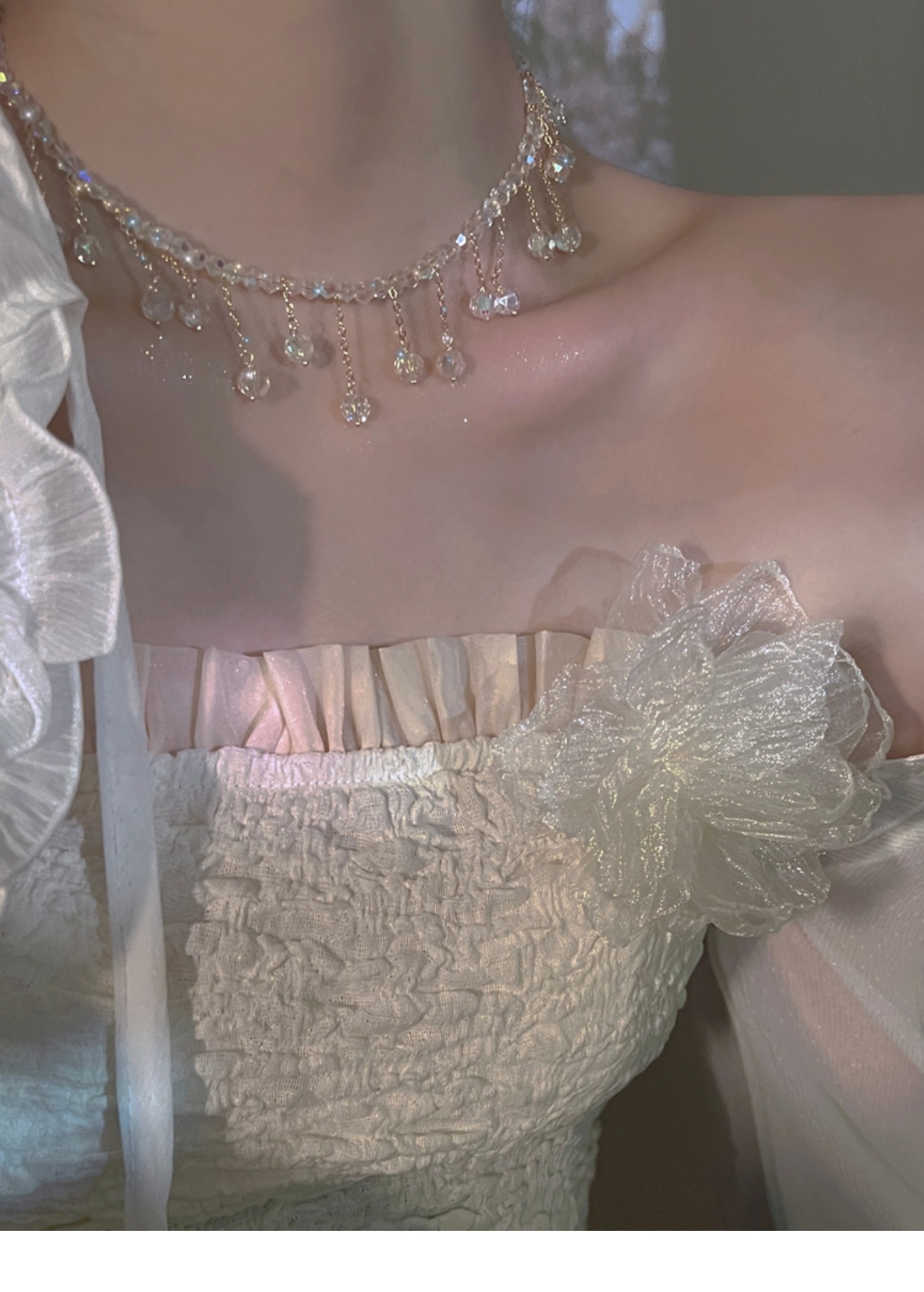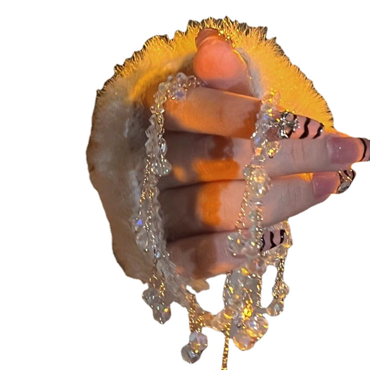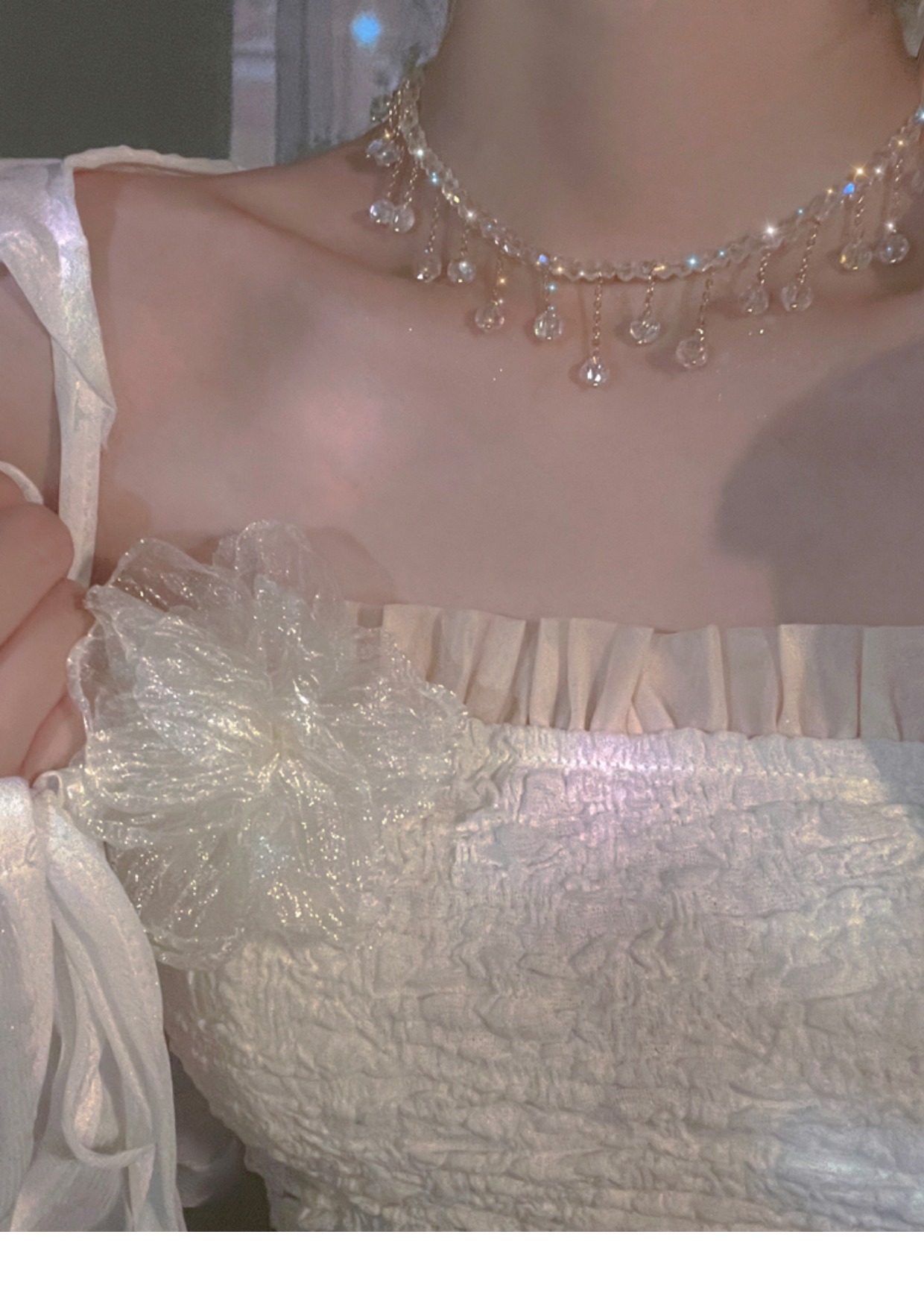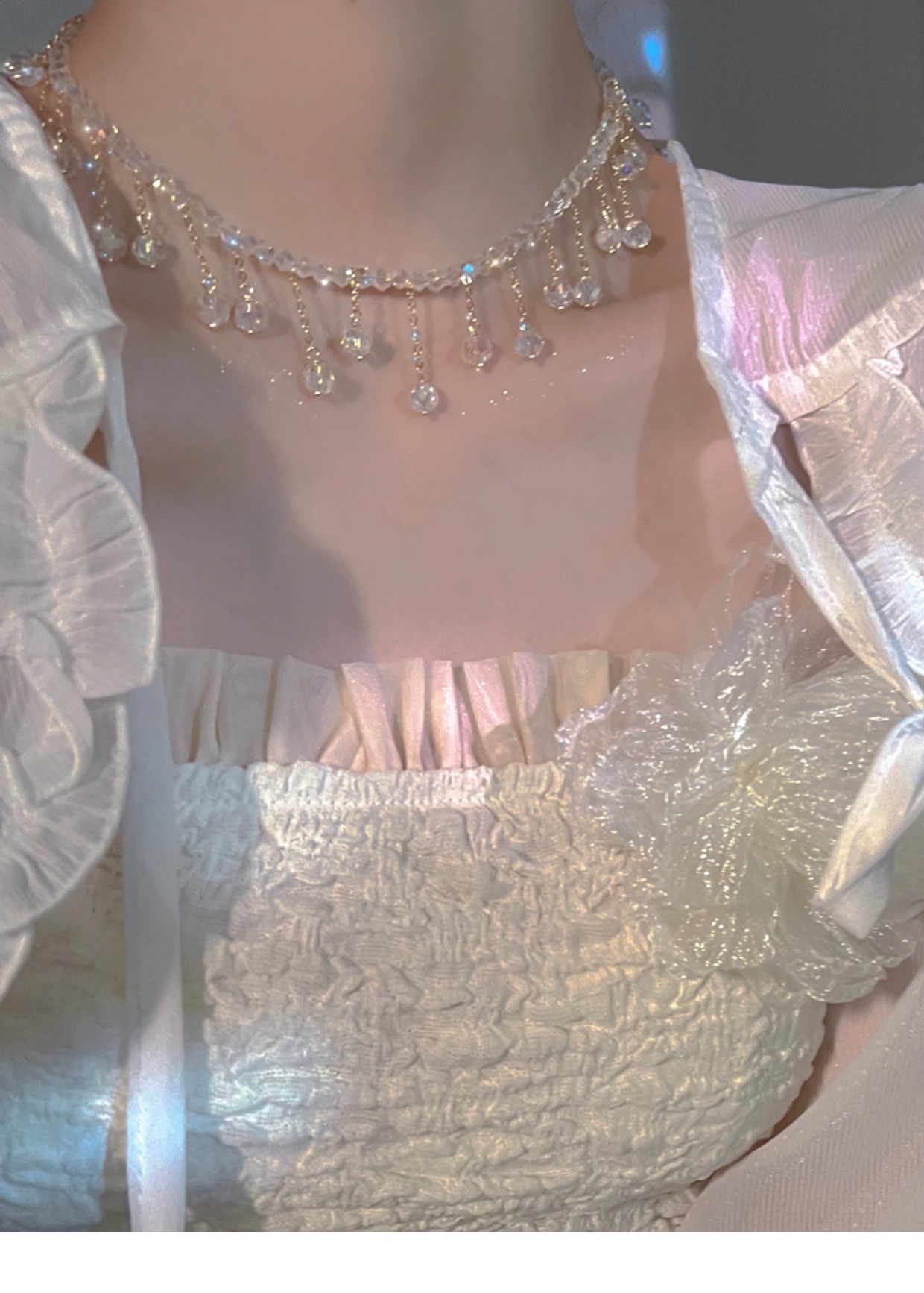 Белый лунный свет ~ вход Роскошная ниша продвинутый супер вспышка Кристалл кисточка прозрачная цепочка на ключицу элегантная вспышка бриллиант бессмертный стиль ожерелье для женщин