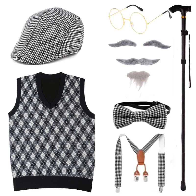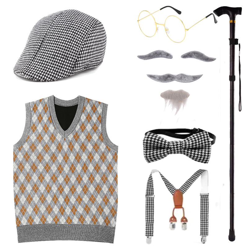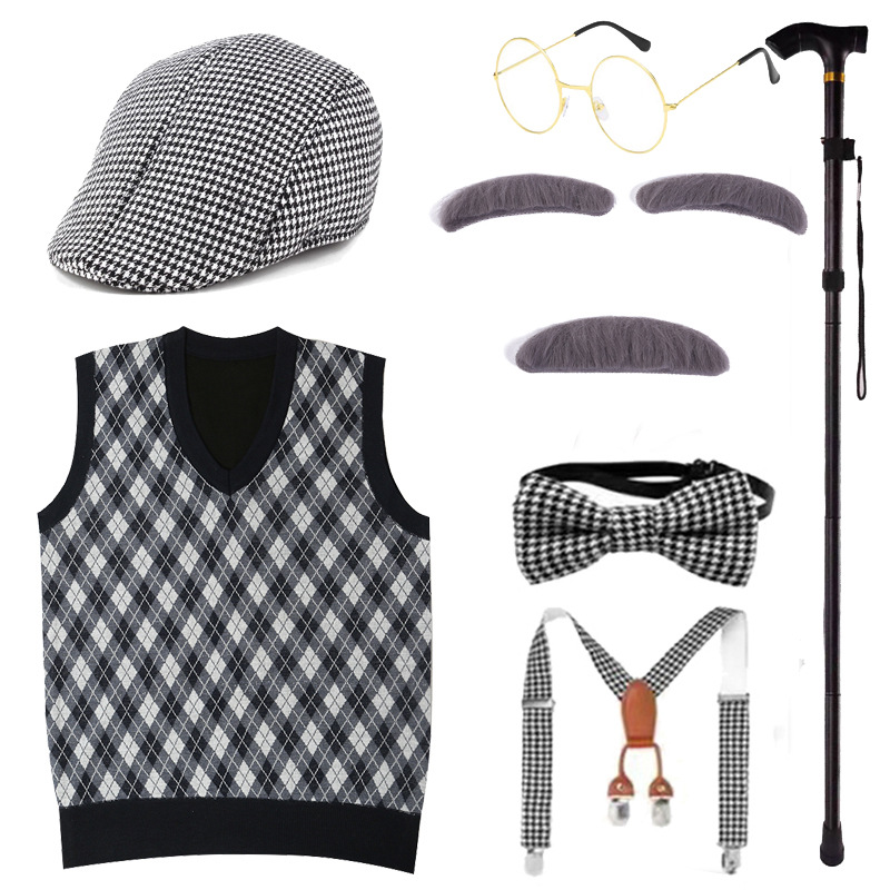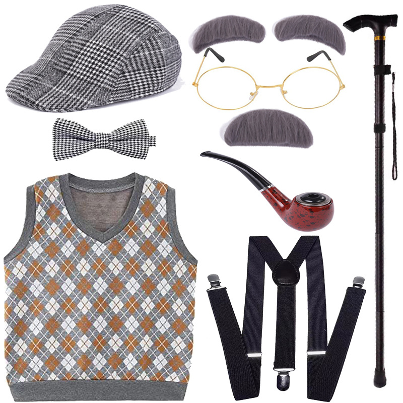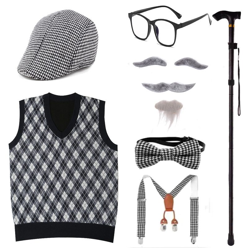 Хэллоуин Дети Старик Парик Одеваются COS Бабушка Старая Женщина Мужской Парик Забавный Борода Надувной Костыль