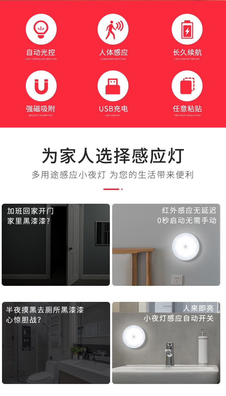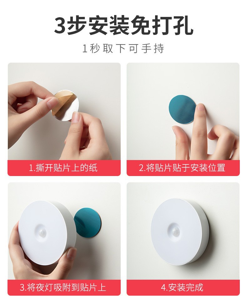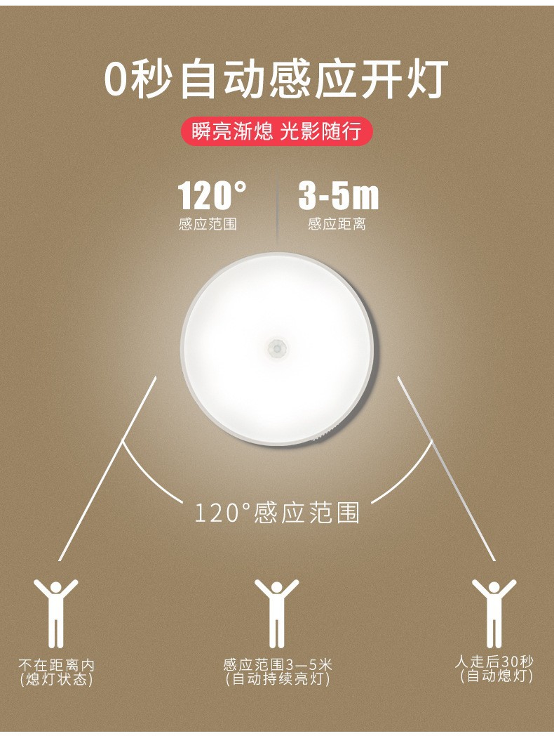 Светодиодный перезаряжаемый беспроводной магнитный ночник с датчиком движения для кухонных шкафов, прихожих и гардеробов.