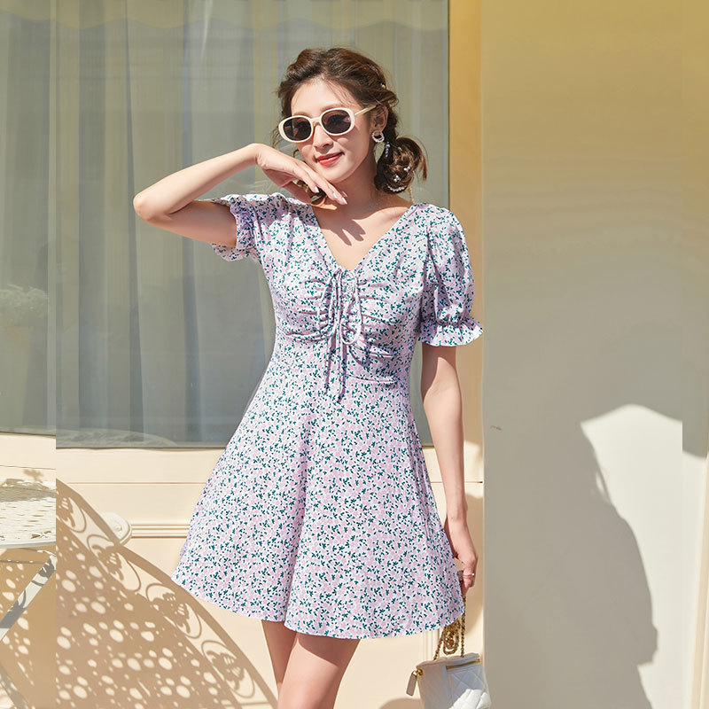 Очень молодой купальник, Женский консервативный цветочный узкий купальник во французском стиле, покрывающий живот, маленький свежий студенческий цельный купальник