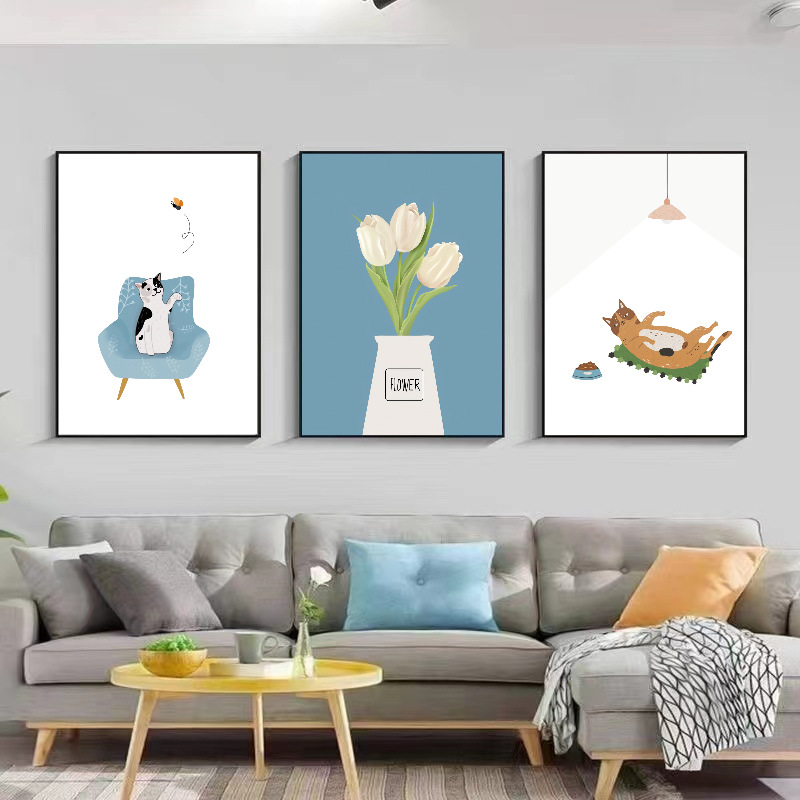 Фреска Гостиная Декоративная живопись Триптих Простой современный скандинавский диван Фон Настенная живопись Спальня Столовая Пейзажная живопись