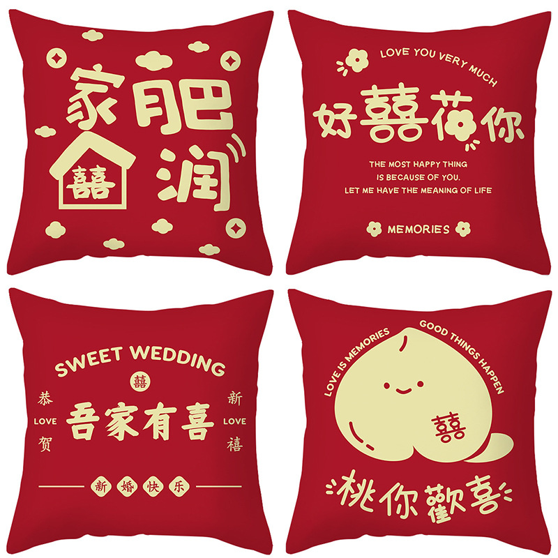 One Piece Печатный Новый Китайский Символ Свадебная Подушка Свадебный Диван Подушка Обложка Свадебная Комната Красная Подушка Празднования